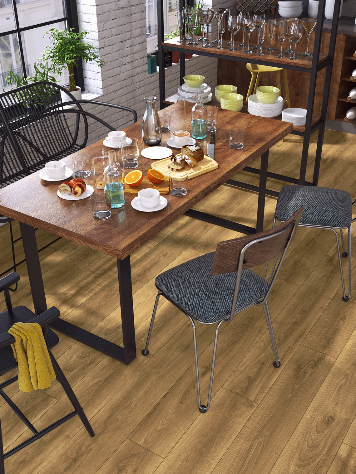 Dzięki systemowi bezklejowego montażu, instalacja paneli SWISS KRONO Aurum Symfonia Aqua Zero Dąb Furioso jest szybka i wygodna, bez konieczności użycia specjalistycznych narzędzi.