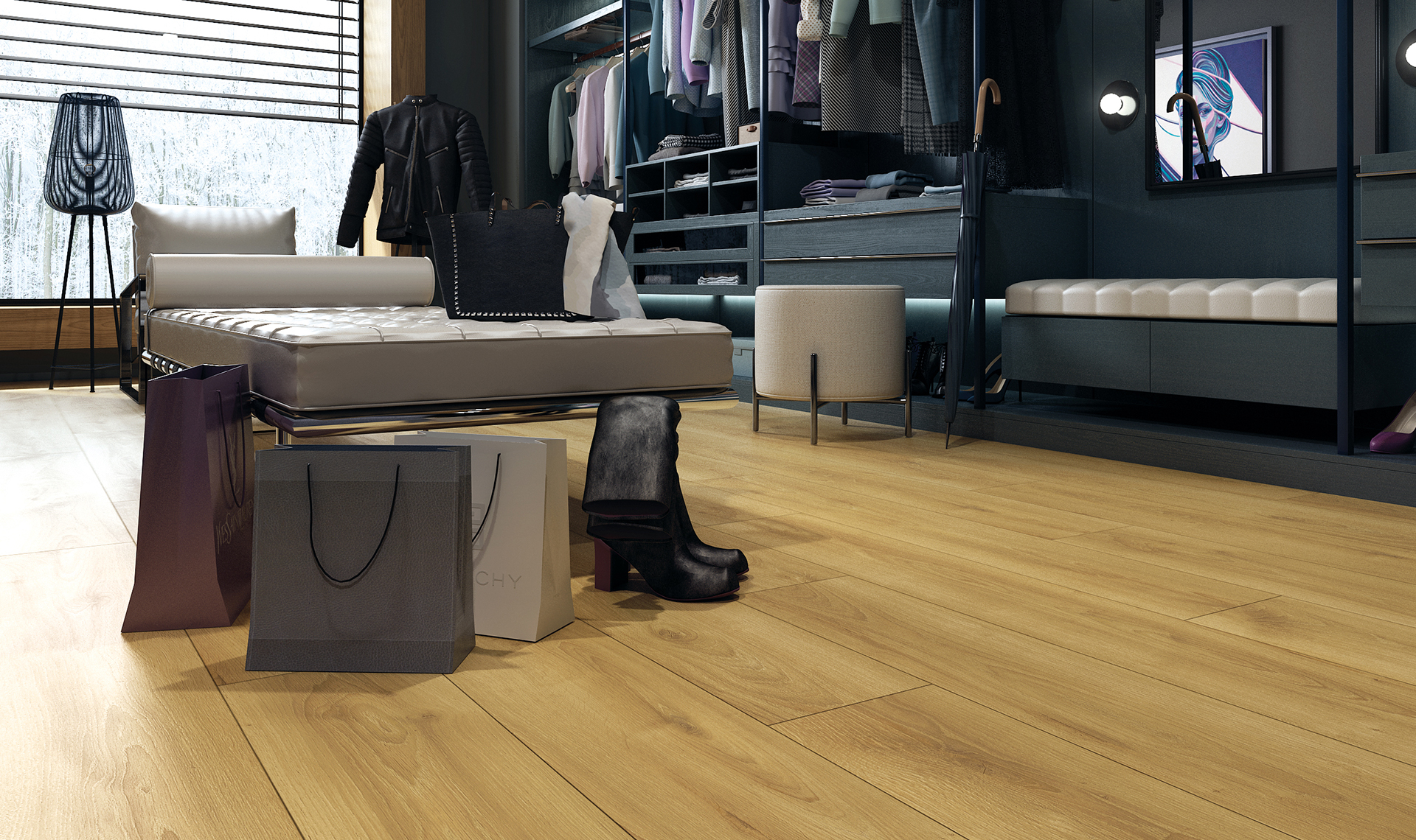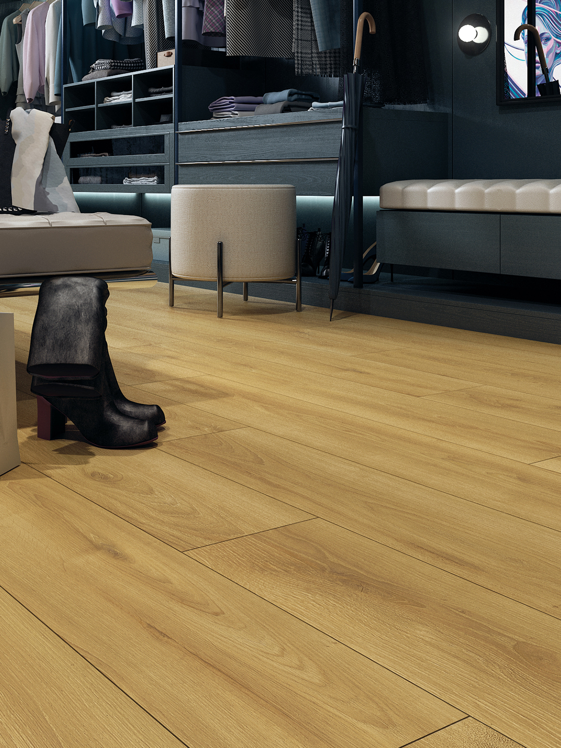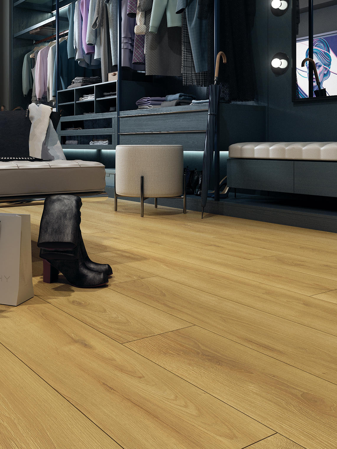 Panele podłogowe Dąb Alodia D40634 to subtelna, ciepła tonacja drewna o wyraźnie zaznaczonych słojach, które nadają pomieszczeniom elegancki i naturalny charakter. Kolor Dąb Alodia łączy w sobie odcienie jasnego brązu z beżowymi akcentami, co sprawia, że panele wprowadzają do wnętrza przytulną, ciepłą atmosferę. Dzięki takiej barwie, pasują doskonale do różnych stylów aranżacyjnych – od klasycznych po nowoczesne, a także do stylu skandynawskiego czy rustykalnego.