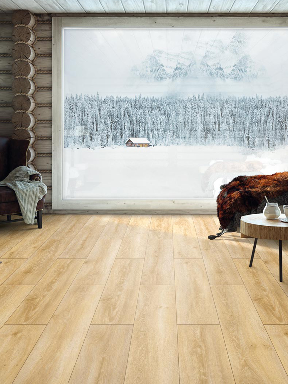 Dopasowanie poziomu podłogi do ceramiki sprawia, że idealnie sprawdzi się w salonie otwartym na przedpokój czy aneks kuchenny.