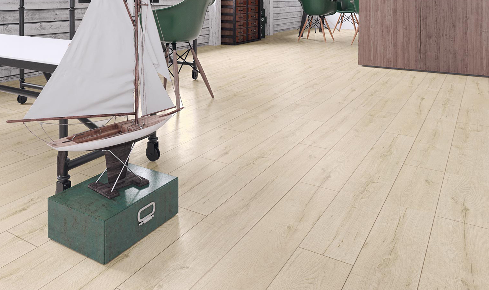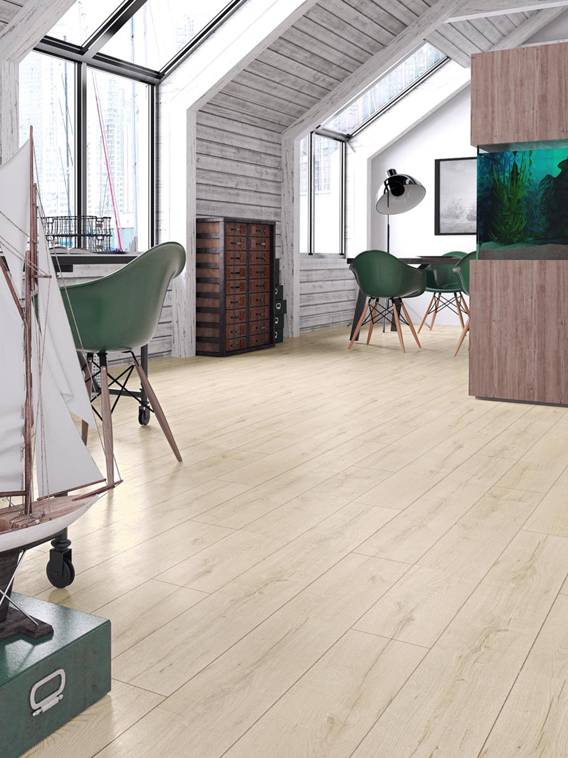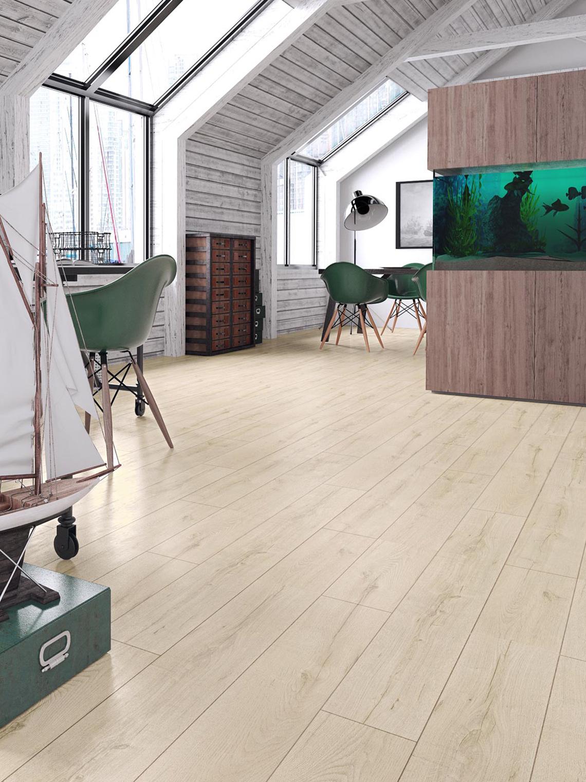 Podłoga inspirowana drewnem i wodą. Nowy wąski format w klasie AC4 daje możliwość wypłynięcia na szerokie wody wnętrzarskich aranżacji.