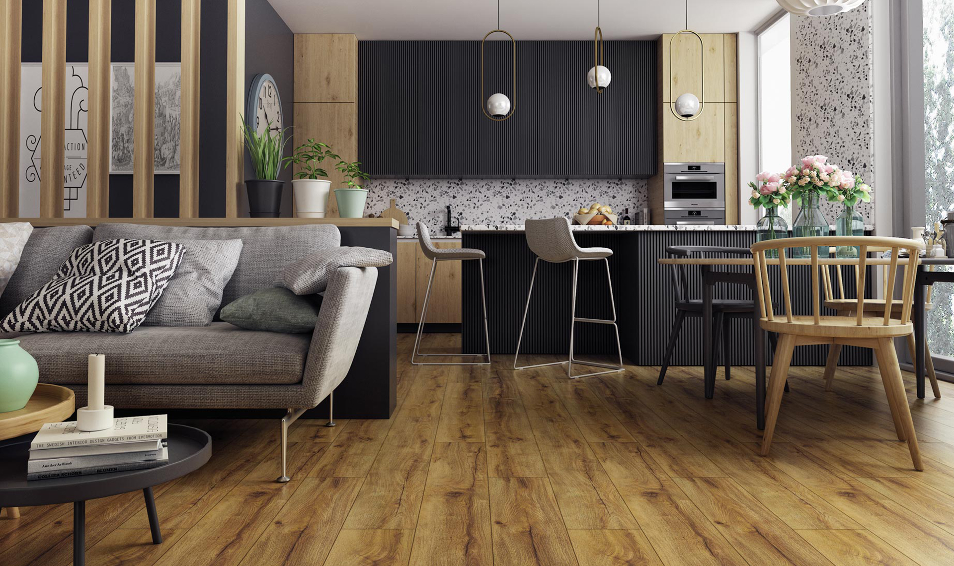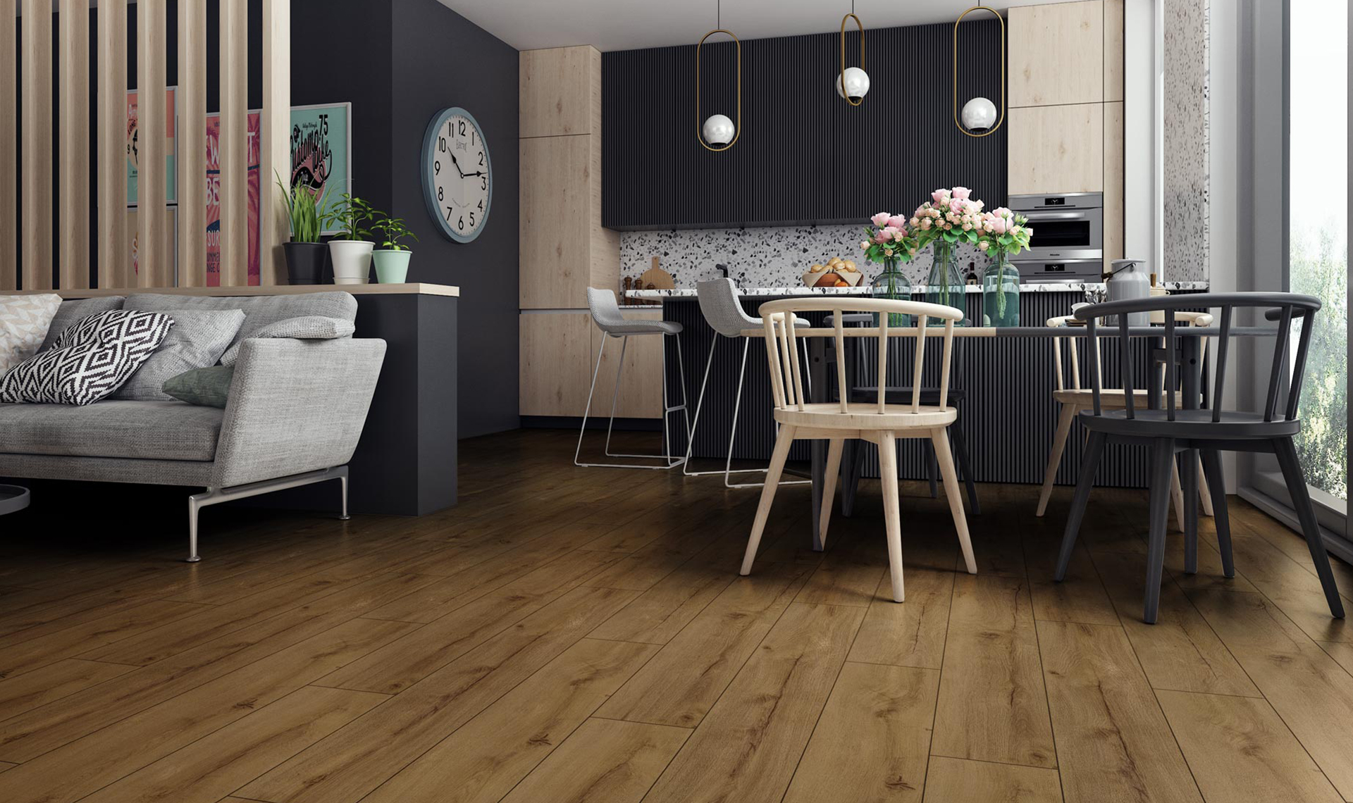 Prawdziwy impuls dla wyobraźni... zarówno piękna jak i niezwykle trwała. Dopracowana w szczegółach struktura z dekorami bielonej sosny i przytulnych dębów pozwala wykreować każdy klimat wnętrza, a a my spokojnie możemy się oddać naszym pasjom i przenieść się na moment w inny świat.