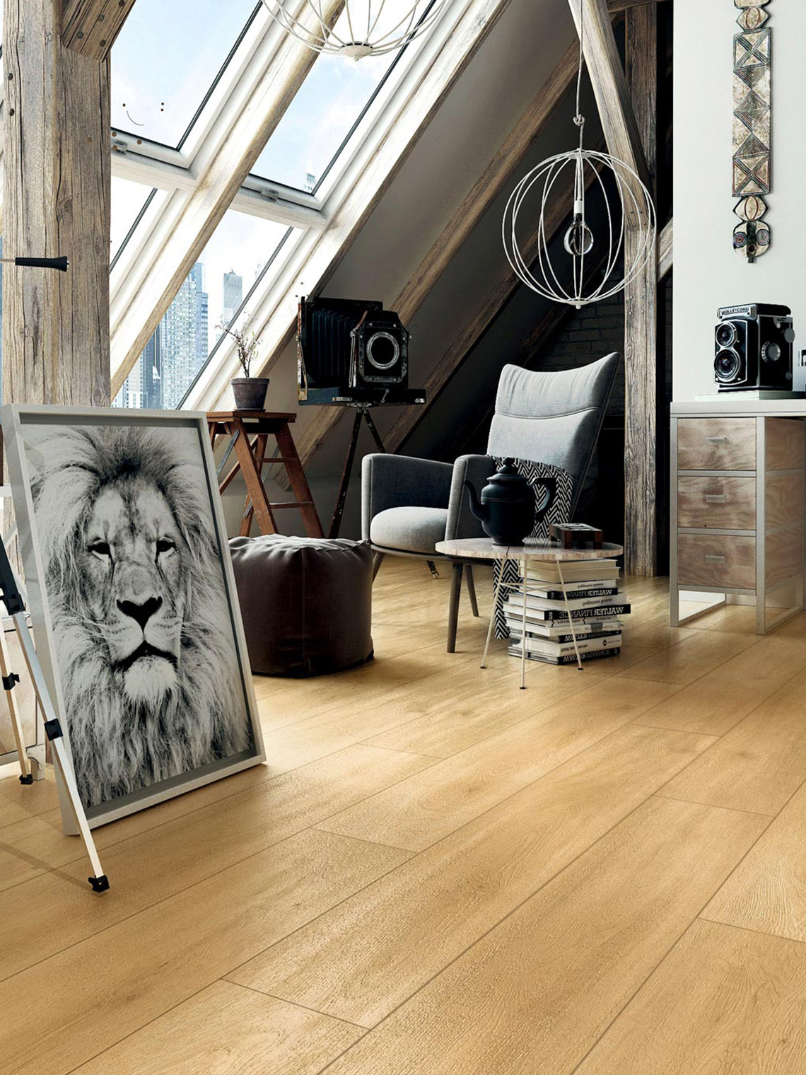 SWISS KRONO Platinium Zodiak Dąb Leo D4568 to eleganckie panele podłogowe o wysokiej trwałości i estetyce, które świetnie oddają urok naturalnego drewna. Dekor "Dąb Leo" zachwyca stonowanym odcieniem jasnego brązu z subtelnym, naturalnym usłojeniem, dodając wnętrzom świeżości i przytulności. Neutralna kolorystyka tych paneli sprawia, że doskonale pasują zarówno do nowoczesnych, jak i tradycyjnych aranżacji, nadając przestrzeni klasyczny i stylowy wygląd.
