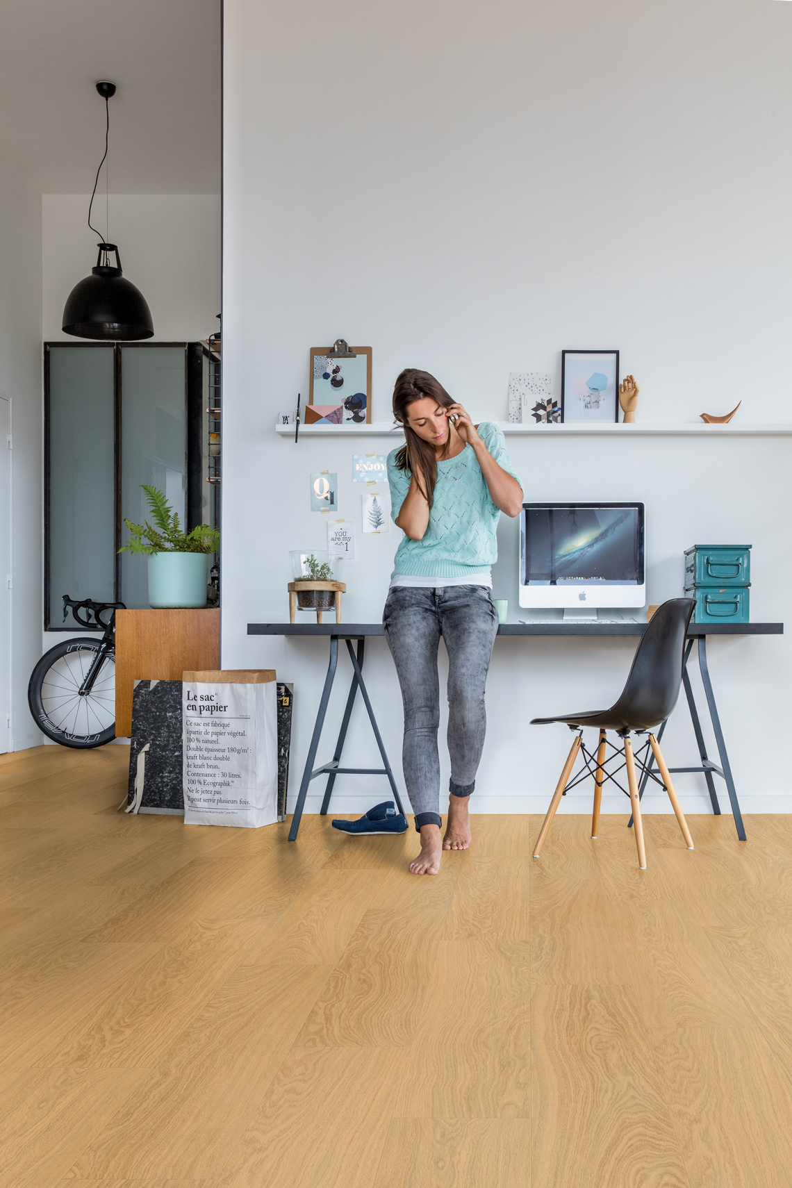 Panele winylowe Quick-Step Bloom Dąb Miodowy (AVMPU40098) to doskonały wybór dla tych, którzy pragną wprowadzić do swojego wnętrza ciepło i przytulność. Charakteryzują się pięknym, złocistym odcieniem drewna, który wprowadza do pomieszczenia przyjemną atmosferę. Panele winylowe Quick-Step Bloom Dąb Miodowy (AVMPU40098) mają wymiary 1494 mm długości, 209 mm szerokości oraz 6 mm grubości, co czyni ją idealną do różnych aranżacji wnętrz. Dzięki zintegrowanemu podkładowi montaż jest szybki i wygodny, eliminując potrzebę stosowania dodatkowych materiałów. Dąb Miodowy doskonale pasuje do różnorodnych stylów, od klasycznych po nowoczesne, tworząc harmonijną przestrzeń w Twoim domu.