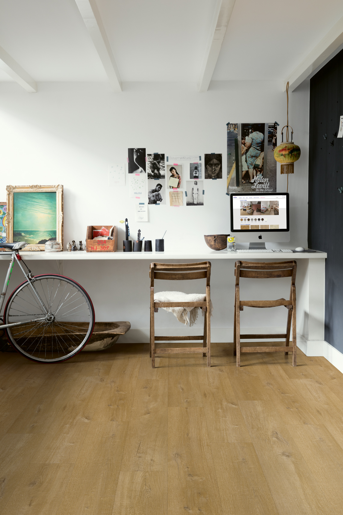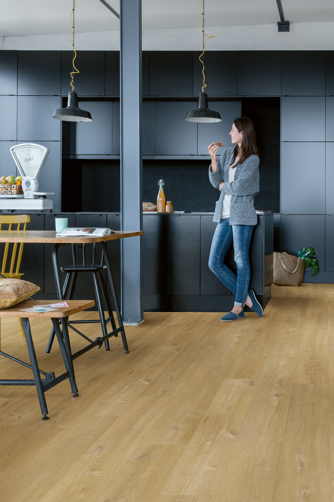 Deska Fuse to idealne połączenie stylu i funkcjonalności. Te piękne podłogi wprowadzą spokój i komfort do Twojego domu. Wybierając wodoodporne podłogi Quick-Step, pozbędziesz się problemów z wilgocią – są 100% wodoodporne, co ułatwia czyszczenie. Dodatkowo, dzięki technologii Scratch Guard, oferują dziesięciokrotnie większą odporność na zarysowania niż tradycyjne podłogi.