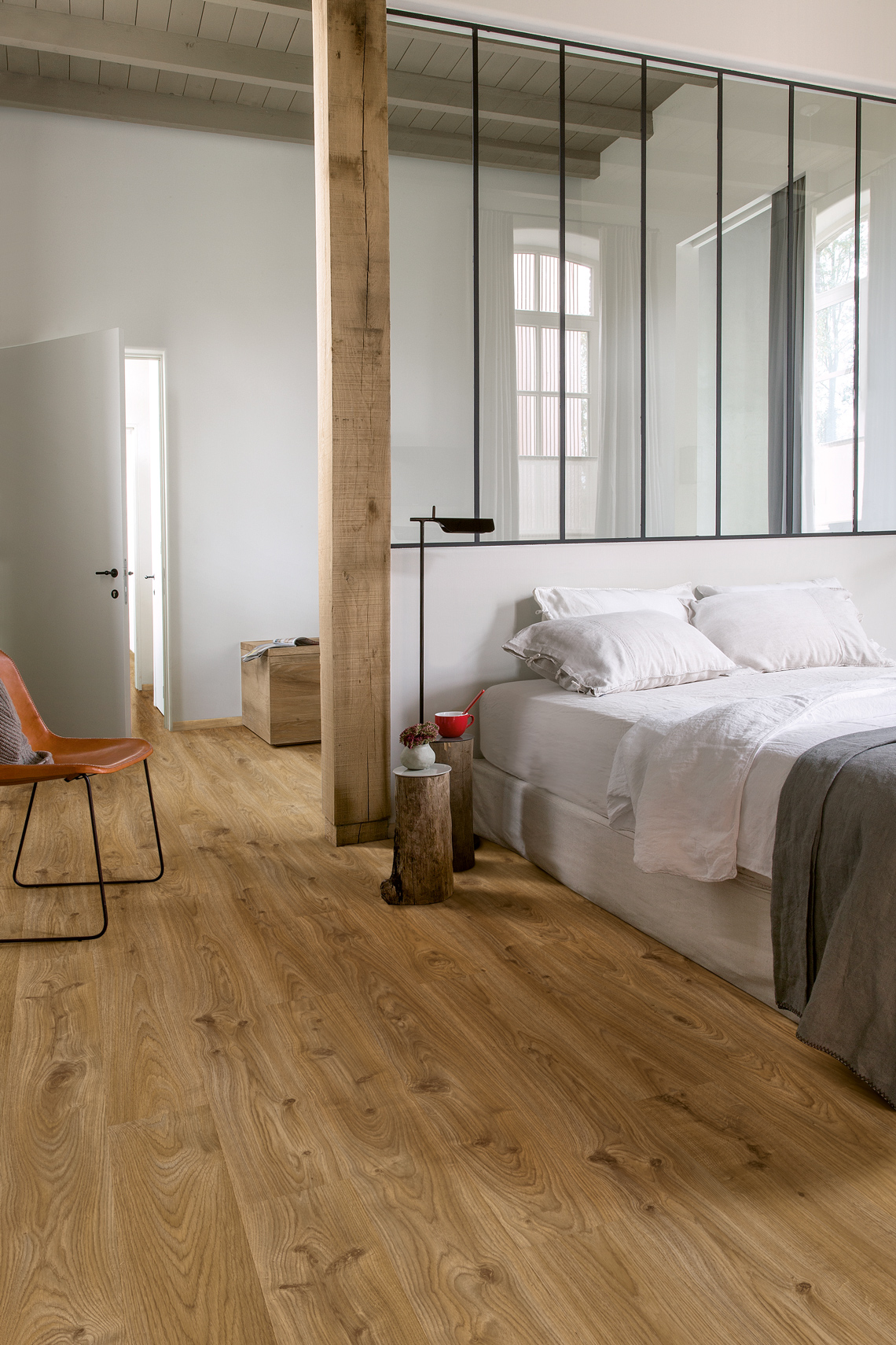 Kolekcja Liv oferuje eleganckie, funkcjonalne deski małej wielkości, które zapewnią wygodę i dobre samopoczucie. Idealnie pasują do nowoczesnych wnętrz, zwłaszcza w małych przestrzeniach. Wybierając wodoodporne podłogi Quick-Step, zyskujesz 100% odporności na wilgoć, co ułatwia czyszczenie. Dodatkowo, technologia Scratch Guard zapewnia dziesięciokrotną odporność na zarysowania w porównaniu do tradycyjnych podłóg.