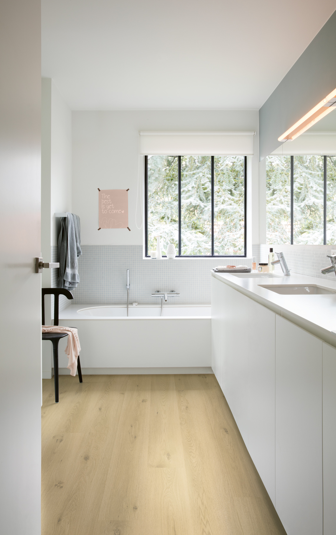 Kolekcja Liv oferuje eleganckie, funkcjonalne deski małej wielkości, które zapewnią wygodę i dobre samopoczucie. Idealnie pasują do nowoczesnych wnętrz, zwłaszcza w małych przestrzeniach. Wybierając wodoodporne podłogi Quick-Step, zyskujesz 100% odporności na wilgoć, co ułatwia czyszczenie. Dodatkowo, technologia Scratch Guard zapewnia dziesięciokrotną odporność na zarysowania w porównaniu do tradycyjnych podłóg.