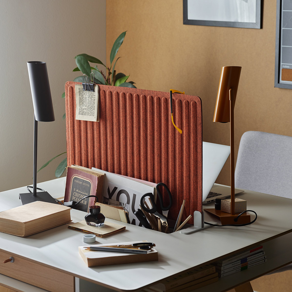 - Zestawiając kilka parawanów koło siebie możesz wydzielić dowolny obszar i stworzyć miejsce do pracy lub nauki.