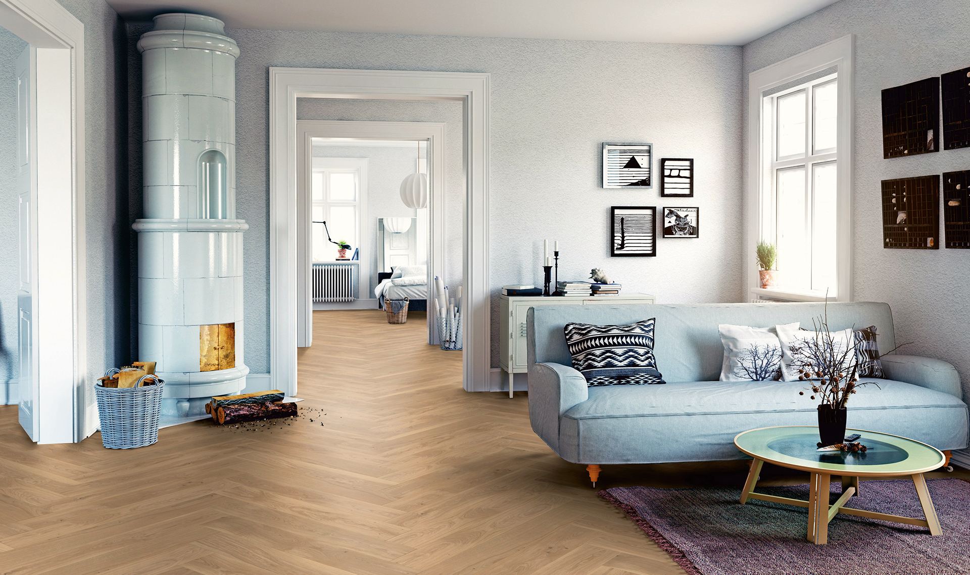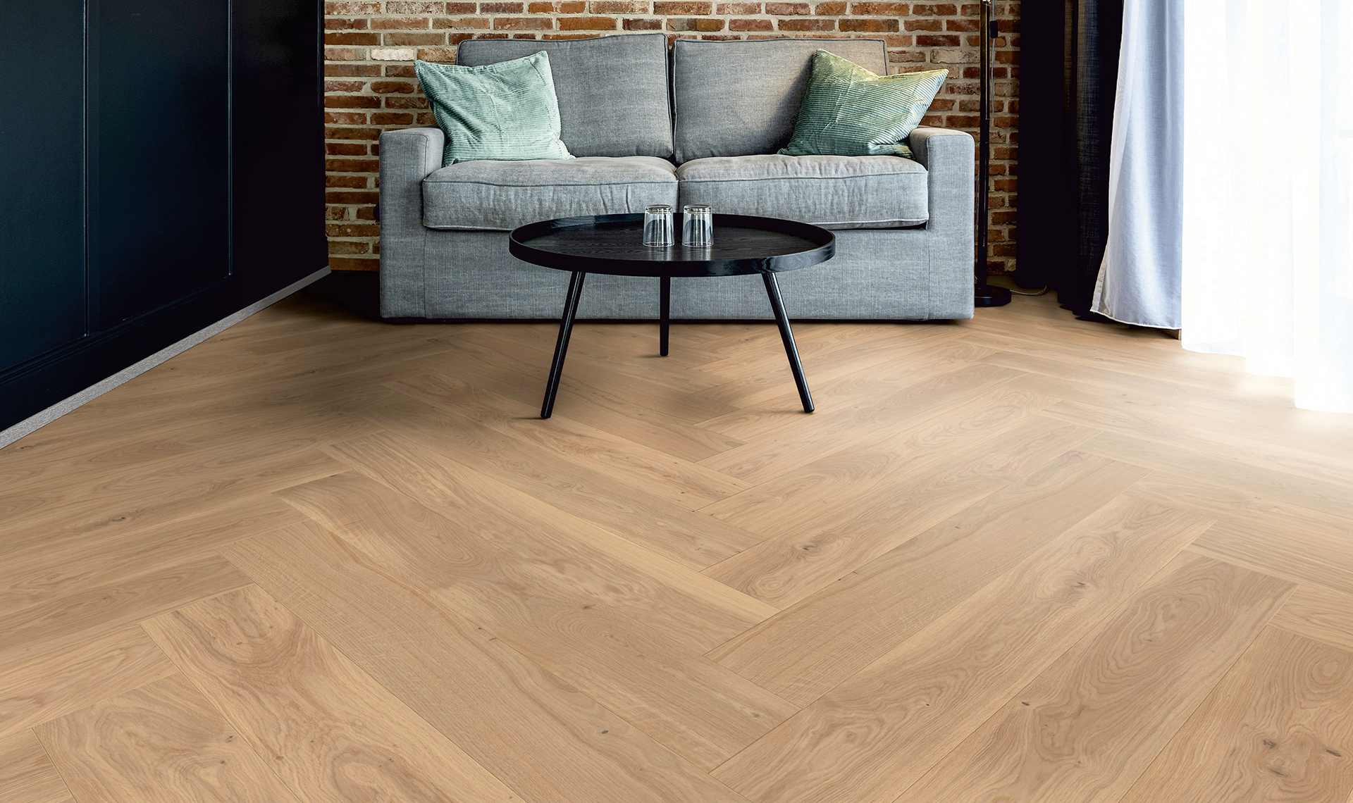 Podłoga drewniana Ter Hürne Herringbone Collection Dąb Ameland wyróżnia się subtelnym, naturalnym odcieniem dębu, który wprowadza do wnętrza lekkość i przytulny klimat. Wzór jodełki nadaje jej elegancki, klasyczny charakter, doskonale podkreślając styl zarówno nowoczesnych, jak i tradycyjnych aranżacji. Wysoka jakość materiału gwarantuje trwałość, stabilność oraz odporność na codzienne użytkowanie. To podłoga, która łączy ponadczasowe piękno drewna z wyjątkową estetyką wykonania.