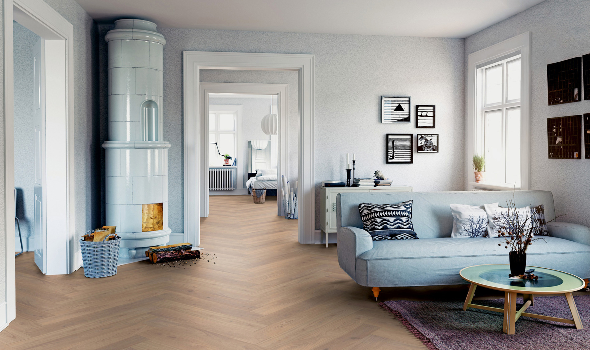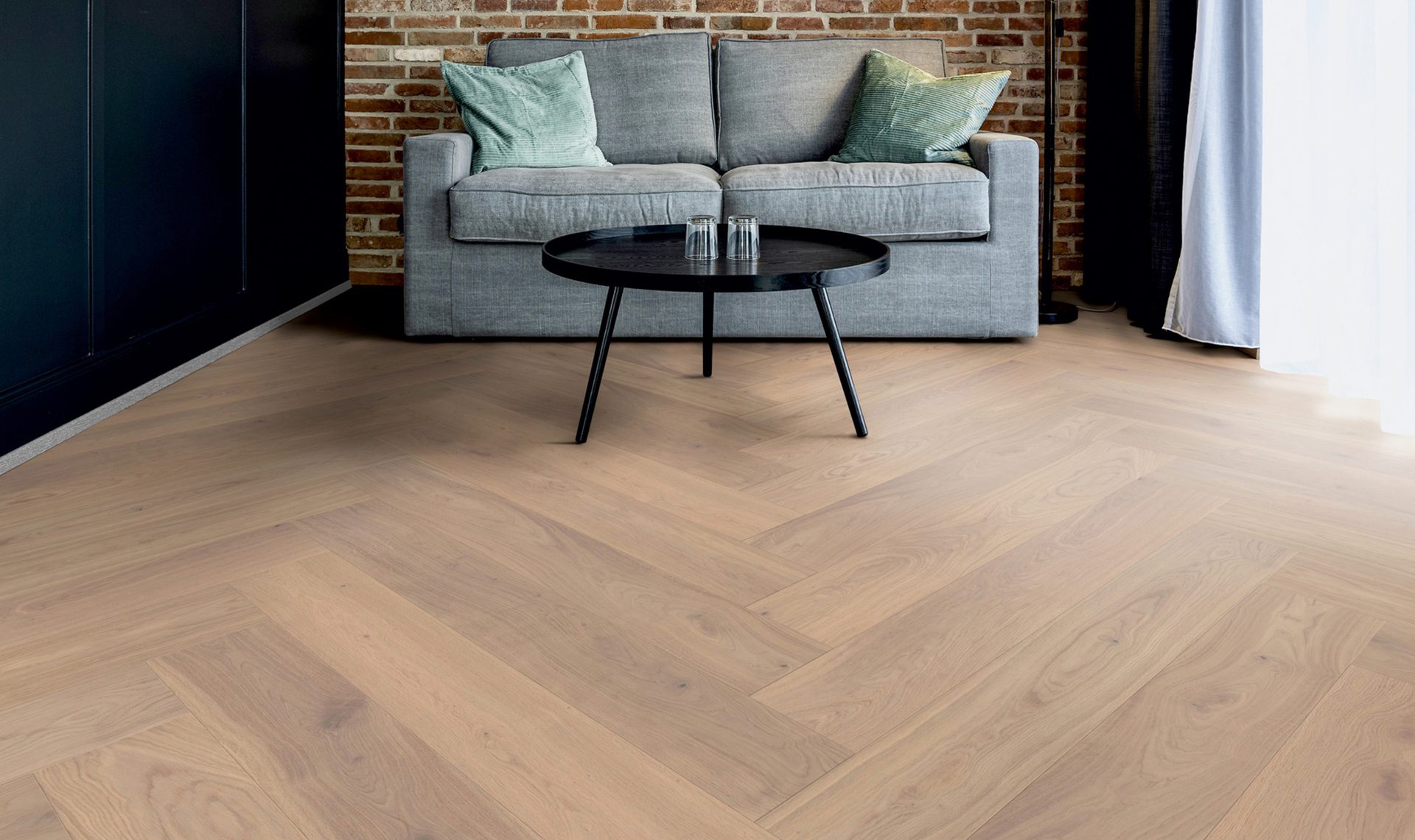 Podłoga drewniana Ter Hürne Herringbone Collection Dąb Rügen zachwyca naturalnym, jasnym odcieniem dębu, który wprowadza do wnętrza ciepło i przytulną atmosferę. Klasyczny wzór jodełki nadaje podłodze elegancki, ponadczasowy charakter, doskonale komponując się zarówno z nowoczesnymi, jak i tradycyjnymi aranżacjami. Starannie wykonana powierzchnia gwarantuje trwałość, stabilność oraz odporność na codzienne użytkowanie. To podłoga, która łączy naturalne piękno drewna z funkcjonalnością i wyjątkowym stylem.