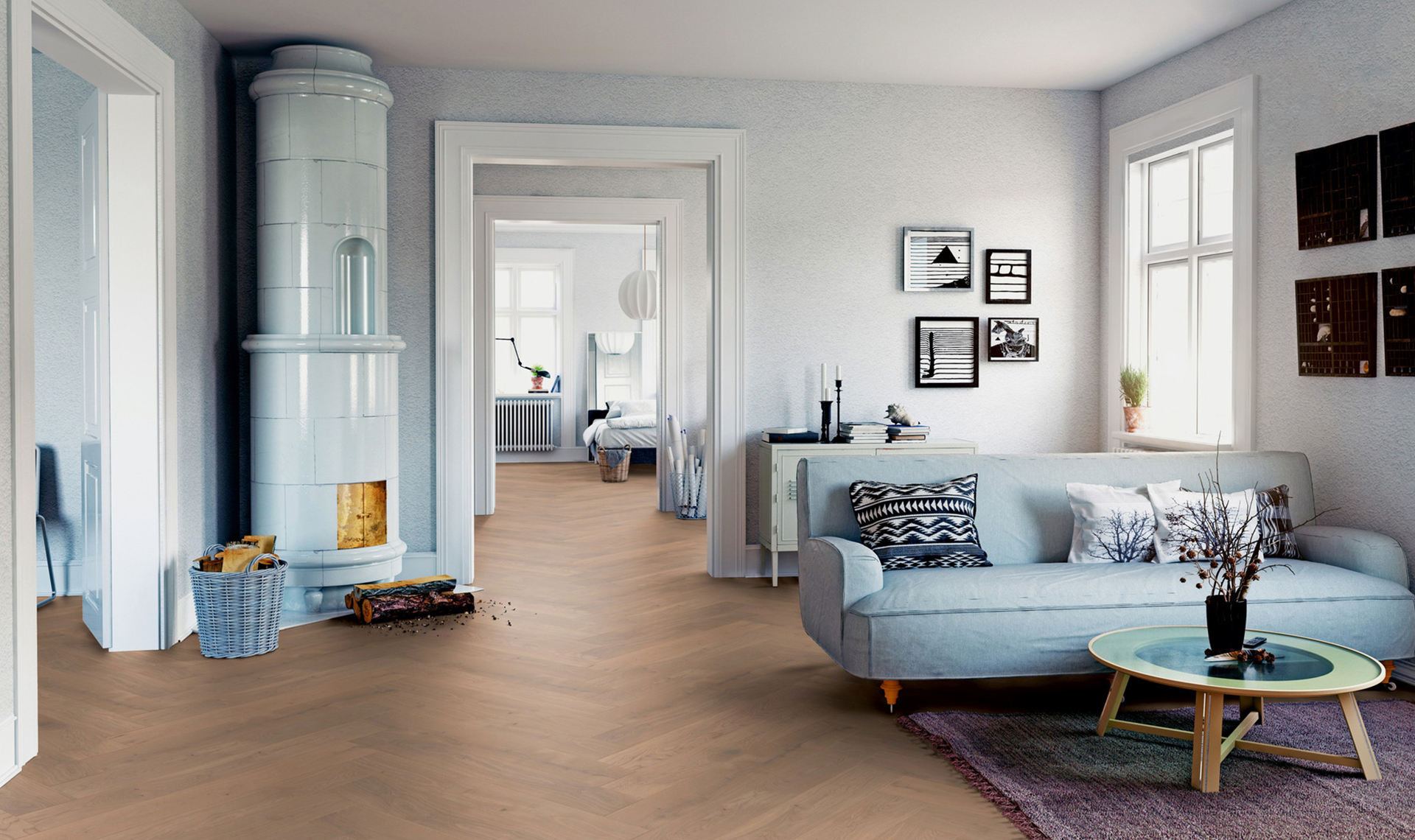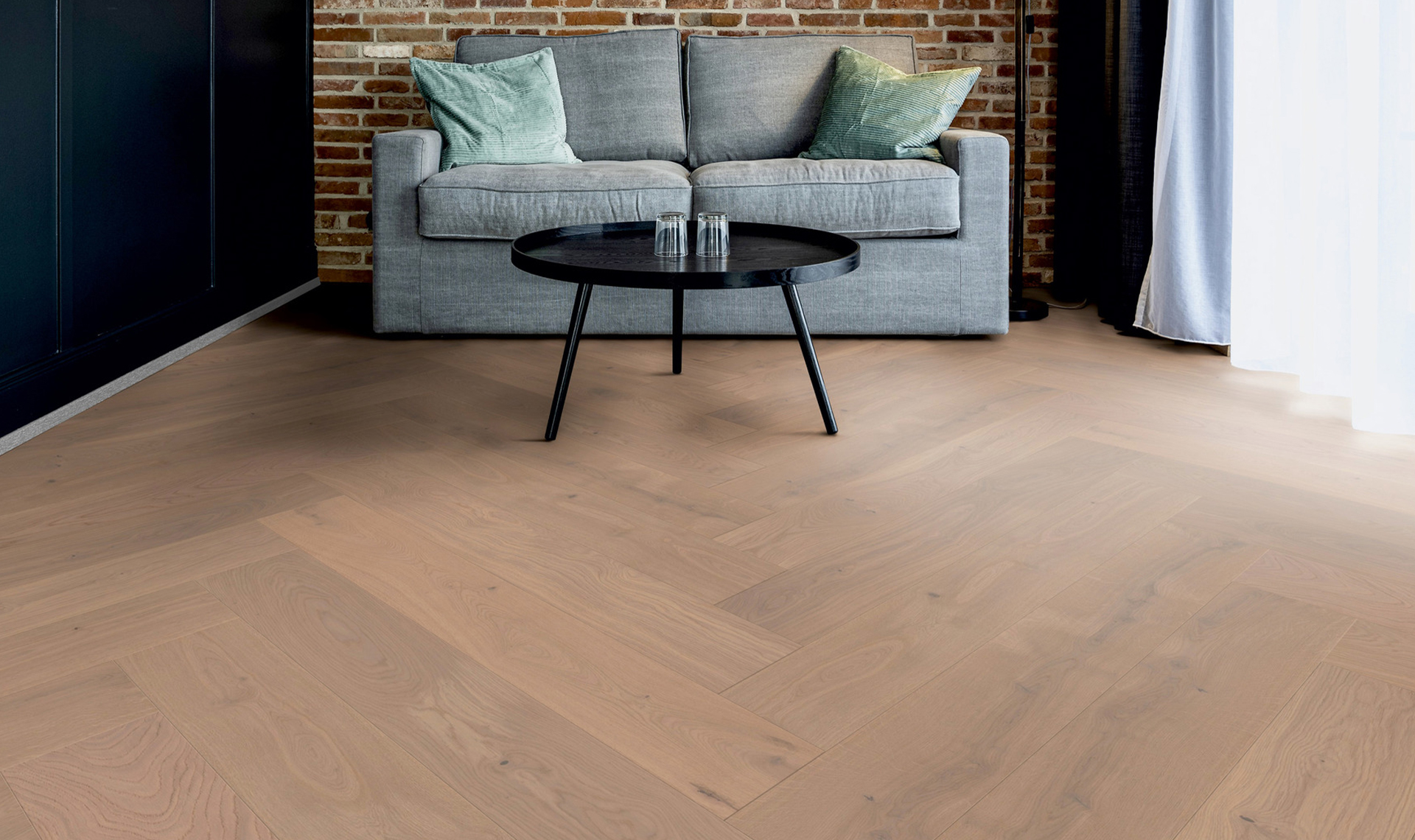 Podłoga drewniana Ter Hürne Herringbone Collection Dąb Seeland zachwyca naturalnym, ciepłym odcieniem dębu, który wprowadza do wnętrza przytulną i harmonijną atmosferę. Klasyczny wzór jodełki nadaje podłodze elegancję i ponadczasowy charakter, doskonale komponując się zarówno z nowoczesnymi, jak i tradycyjnymi aranżacjami. Starannie wykończona powierzchnia zapewnia trwałość, stabilność oraz odporność na codzienne użytkowanie. To podłoga, która łączy naturalne piękno drewna z funkcjonalnością i wyrafinowanym stylem.