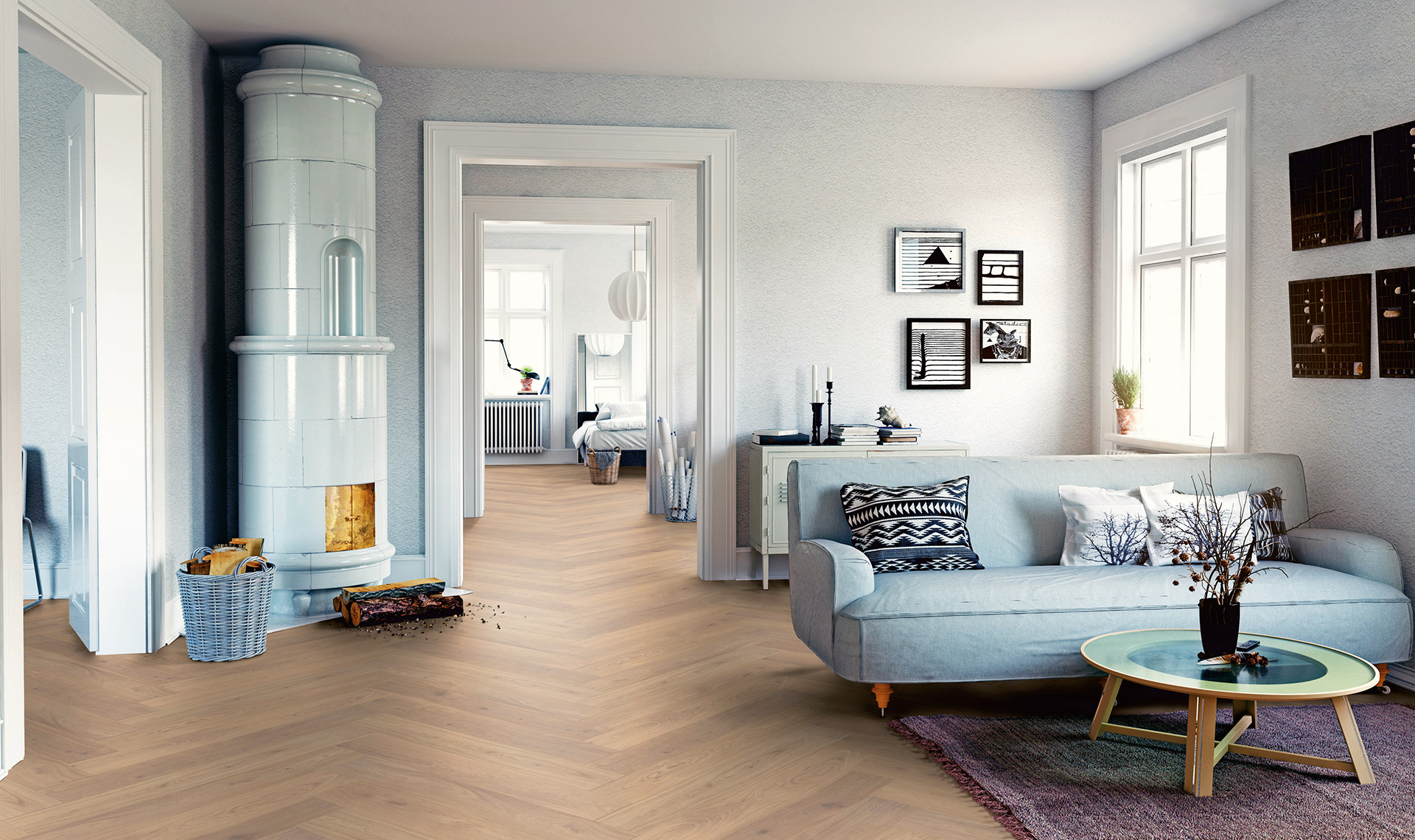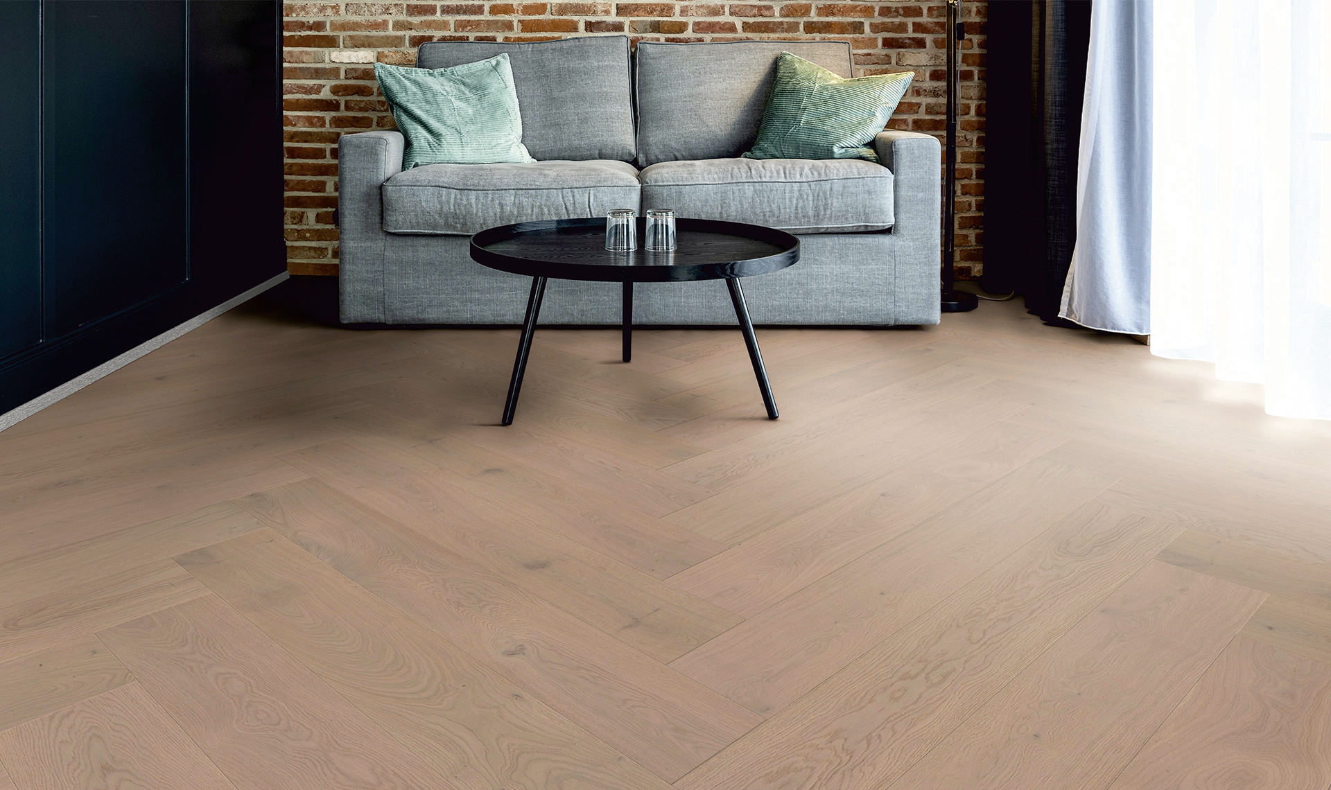 Podłoga drewniana Ter Hürne Herringbone Collection Dąb Sylt to eleganckie połączenie klasycznego wzoru jodełki z naturalnym pięknem dębu. Jej ciepły, jasny odcień wprowadza do wnętrza harmonię i poczucie przestrzeni, idealnie komponując się zarówno z nowoczesnym, jak i tradycyjnym wystrojem. Wysoka jakość wykonania gwarantuje trwałość, stabilność oraz odporność na codzienne użytkowanie. To podłoga, która podkreśla charakter pomieszczenia, nadając mu wyjątkowy, ponadczasowy styl.