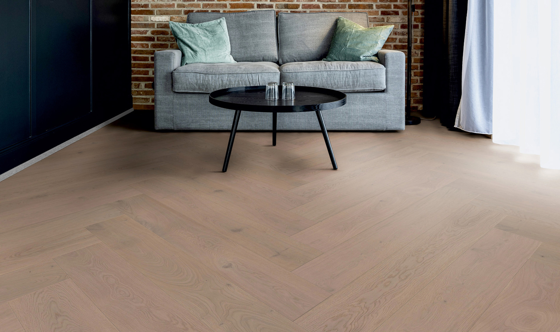 Podłoga drewniana Ter Hürne Herringbone Collection Dąb Usedom wyróżnia się naturalnym, ciepłym odcieniem dębu, który nadaje wnętrzu przytulny i elegancki charakter. Klasyczny wzór jodełki wprowadza harmonię i ponadczasowy styl, podkreślając wyjątkowy wygląd każdego pomieszczenia. Wysokiej jakości wykonanie gwarantuje trwałość, stabilność oraz odporność na codzienne użytkowanie. To idealny wybór dla osób ceniących połączenie naturalnego piękna drewna z funkcjonalnością i estetyką.