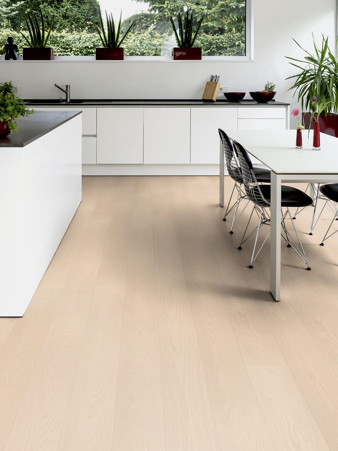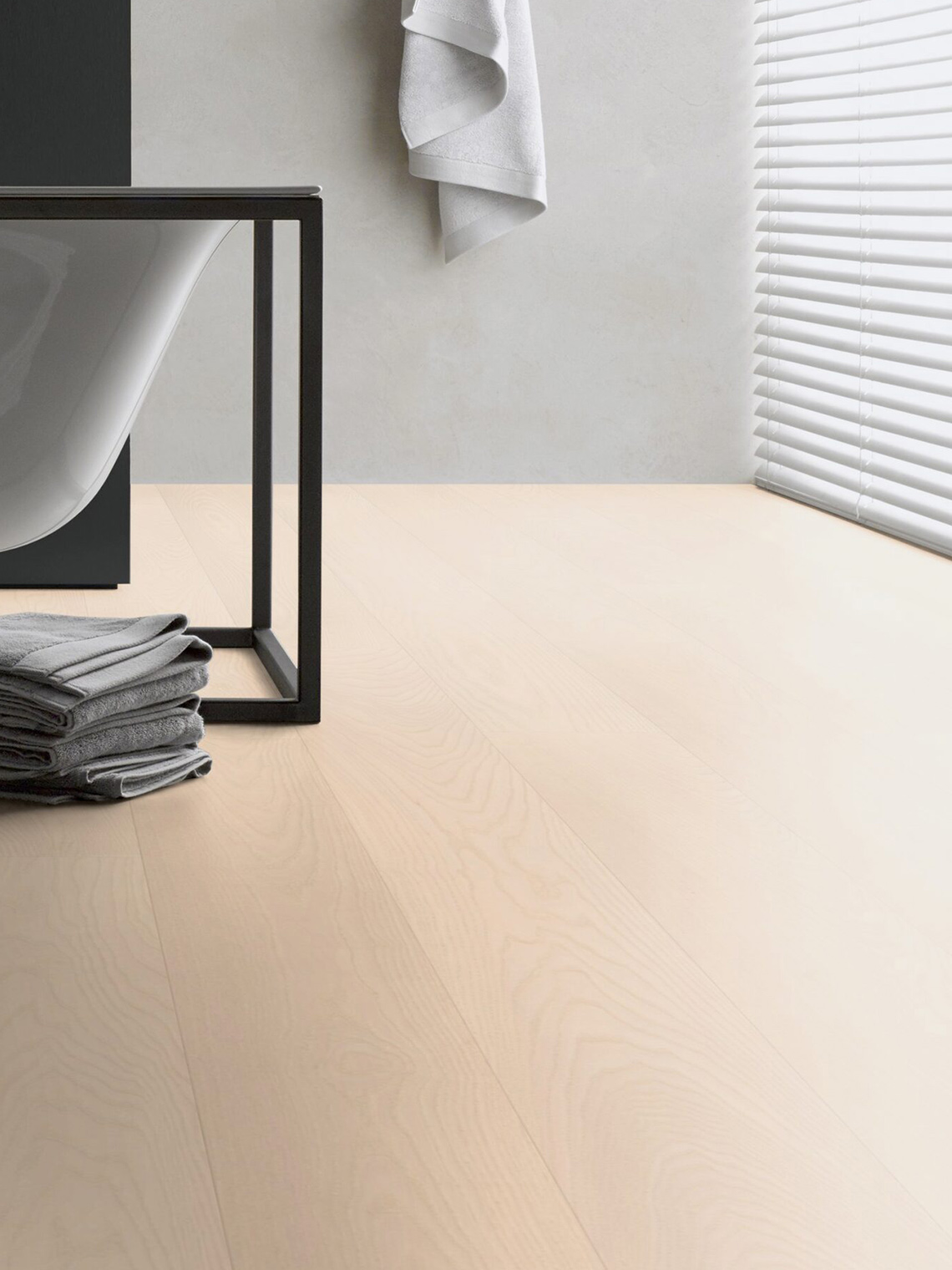 Podłoga hybrydowa Ter Hürne Hywood Classic Jesion Yoho Z05a to doskonały wybór dla osób, które pragną połączyć elegancję naturalnego drewna z nowoczesnymi rozwiązaniami technologicznymi. Odcień Jesion Yoho charakteryzuje się jasnym, ciepłym odcieniem drewna z subtelnymi usłojeniami, które nadają pomieszczeniom lekkości, świeżości oraz przytulności. Dzięki swojej neutralnej tonacji, idealnie komponuje się z szeroką gamą stylów, od nowoczesnych po skandynawskie, dodając wnętrzom eleganckiego, ale zarazem naturalnego charakteru.
