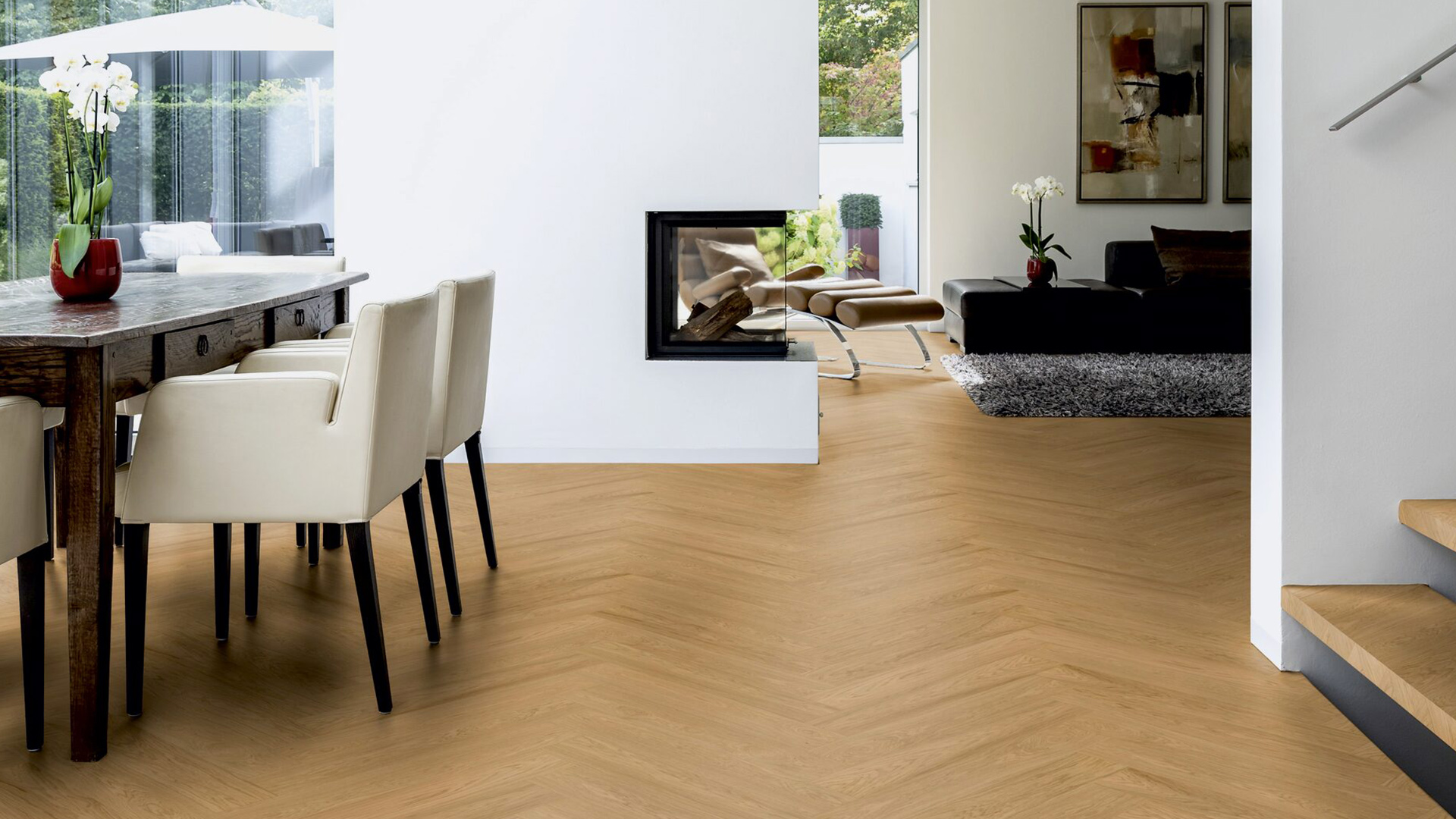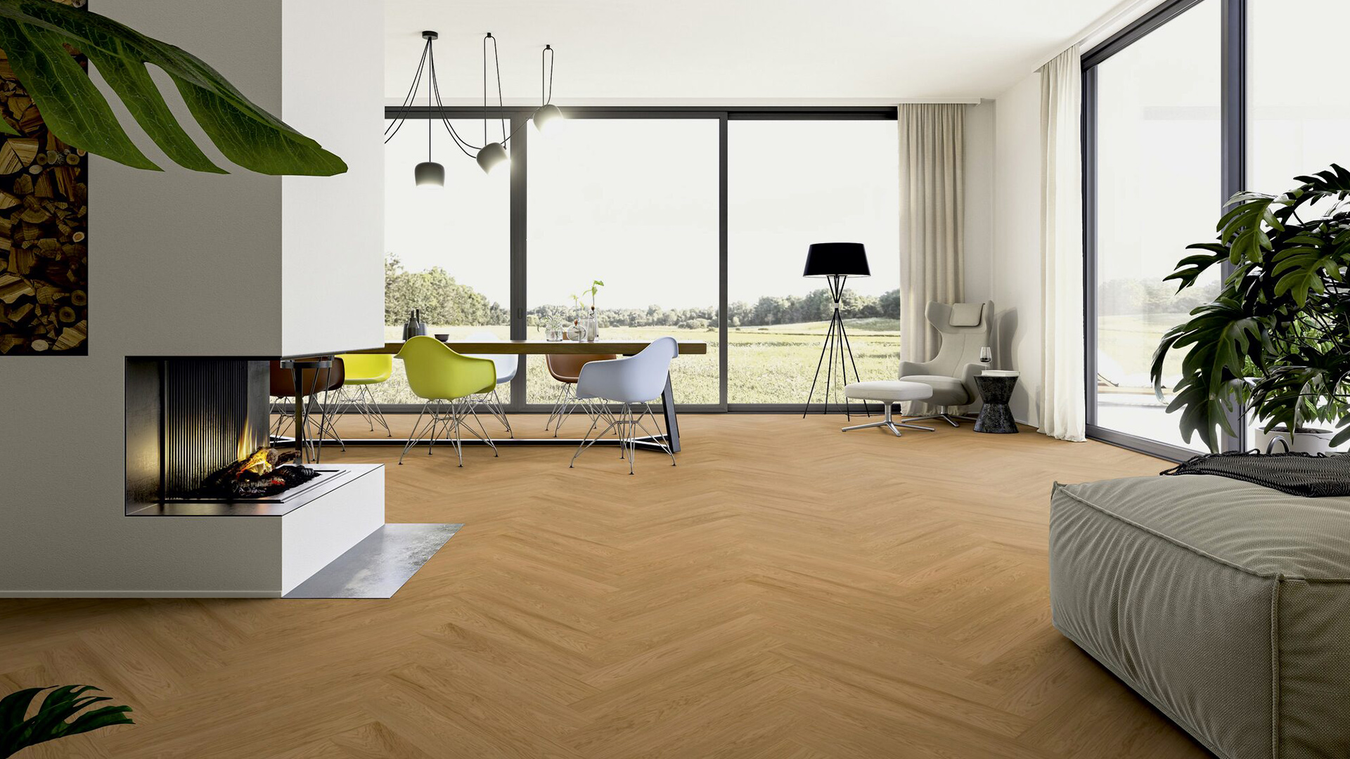 Podłoga hybrydowa Ter Hürne Hywood Herringbone Dąb Capitol Reef 2901 to wyjątkowy wybór dla osób szukających eleganckiej, trwałej i nowoczesnej podłogi. Układ jodełki w połączeniu z naturalnym odcieniem Dąb Capitol Reef nadaje wnętrzom wyjątkowego charakteru, wprowadzając do przestrzeni ciepły, jasny odcień drewna z subtelnymi tonacjami, które pasują do zarówno klasycznych, jak i współczesnych aranżacji.