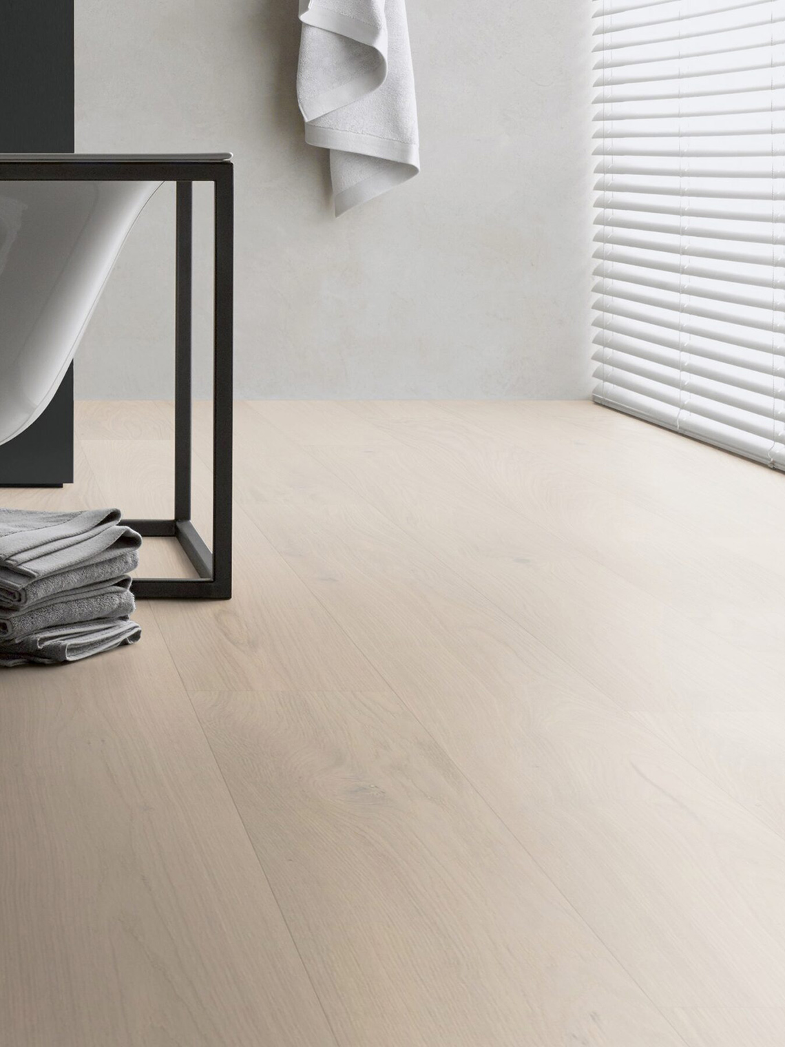 Podłoga hybrydowa Ter Hürne Hywood Noblesse Dąb Veluwe Z06b to wyjątkowe połączenie elegancji, trwałości i nowoczesnych technologii. Panele w odcieniu Dąb Veluwe oferują subtelną, ale wyrazistą tonację jasnego drewna z naturalnymi akcentami, które wprowadzają do wnętrz ciepło, a jednocześnie nadają im lekki i świeży wygląd. Ten kolor doskonale komponuje się w przestrzeniach o różnych stylach aranżacyjnych, od klasycznych po nowoczesne, tworząc harmonijną atmosferę w każdym pomieszczeniu.