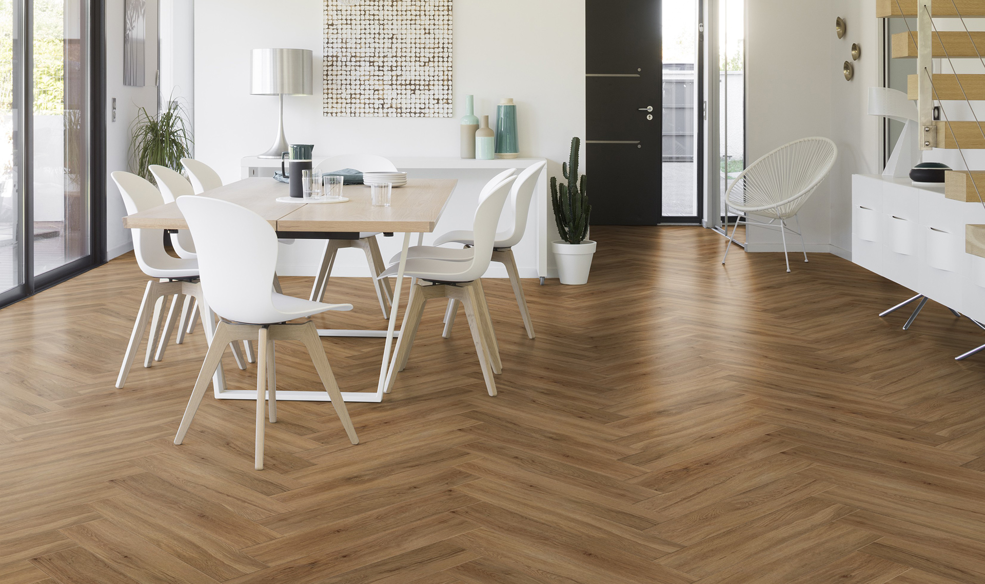 Podłoga GERFLOR Creation 55 Rigid Acoustic Jodełka Quartet 0503 doskonale sprawdzi się w wymagających przestrzeniach mieszkalnych, komercyjnych i przemysłowych, łącząc stylowy wygląd z najwyższym komfortem i trwałością.