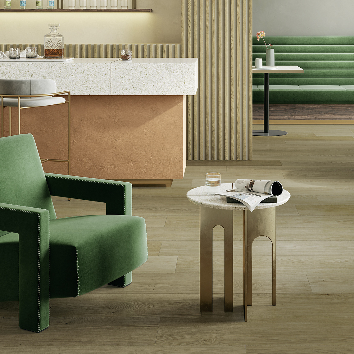 CREATION 55 RIGID ACOUSTIC to podłogiwinylowe, sztywne z mocowaniem na zamek i warstwą izolacji akustycznej, antyelektrostatyczne, w grupie ścieralności T, dostępne w formacie desek (klepek) lub płytek o fazowanych krawędziach.