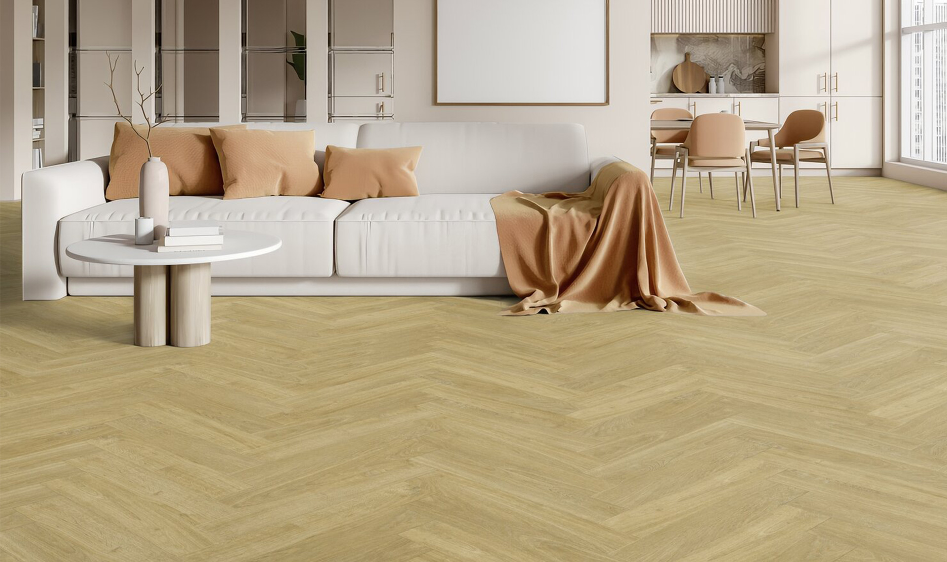 Gerflor Senso Unik Herringbone Madera Miel to elegancka podłoga winylowa w klasycznym wzorze jodełki, inspirowana naturalnym drewnem w ciepłym, miodowym odcieniu. Idealna do wnętrz w stylu skandynawskim, rustykalnym czy nowoczesnym, wprowadza do przestrzeni przytulność i ponadczasowy charakter.