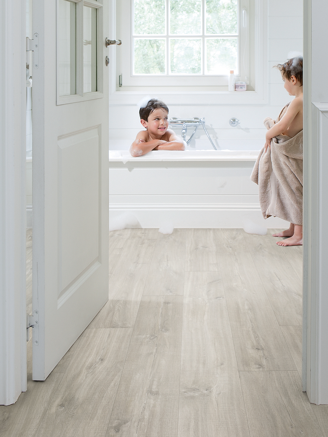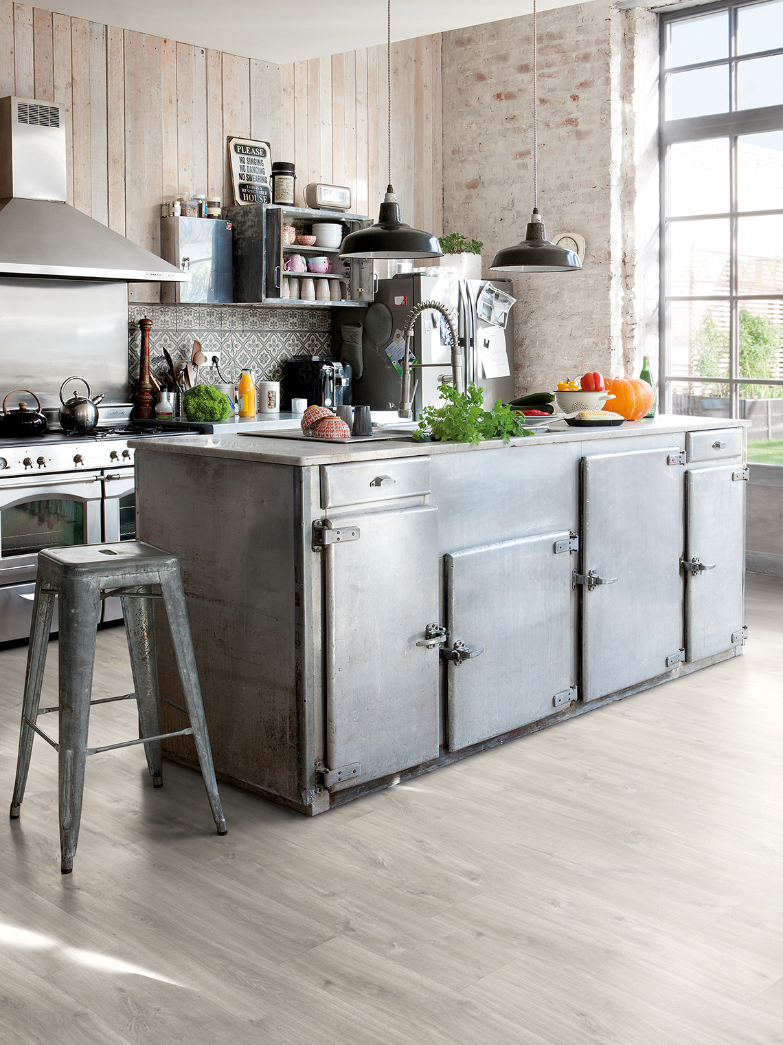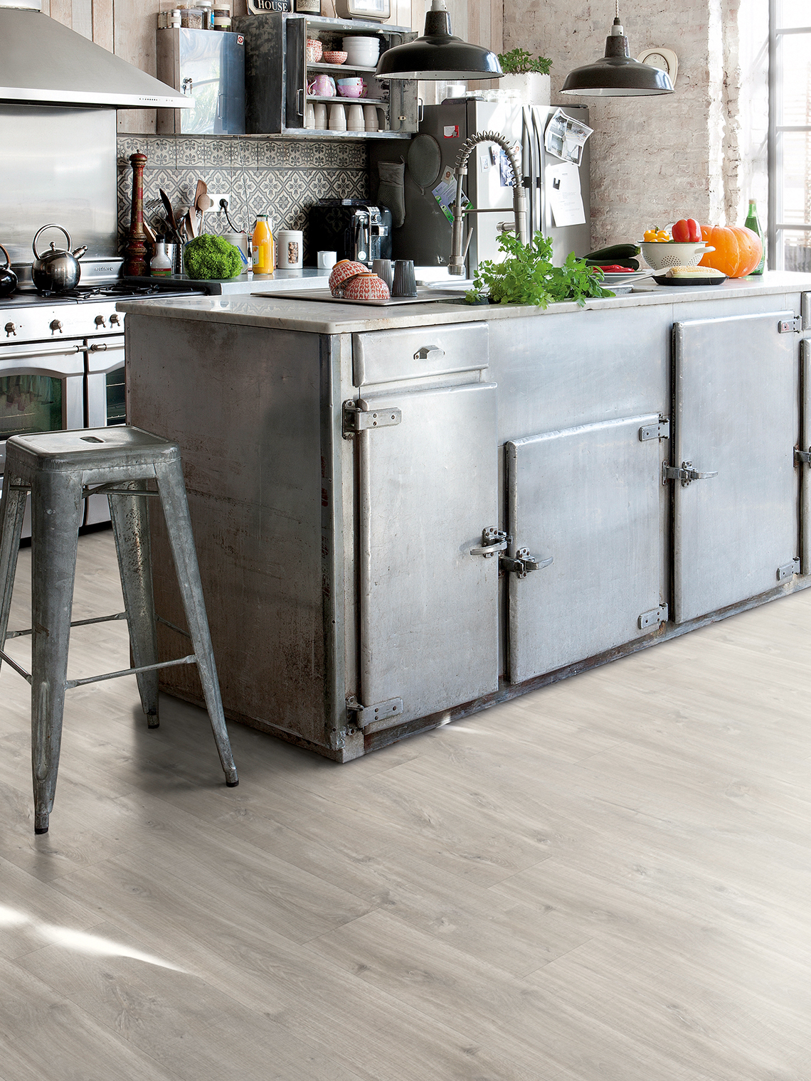 Panele winylowe Quick-Step Blos Dąb Canyon Szary ze Śladami Cięcia Piłą (AVSPU40030) to nowoczesny wybór dla miłośników surowego, industrialnego stylu. Charakteryzują się szarym odcieniem dębu z wyraźnymi śladami cięcia, które dodają im autentyczności i charakteru. Panele mają wymiary 1251 mm długości, 189 mm szerokości i 5 mm grubości, a zintegrowany podkład zapewnia komfort oraz dobrą izolację akustyczną. Idealne do nowoczesnych aranżacji, łączą estetykę z funkcjonalnością