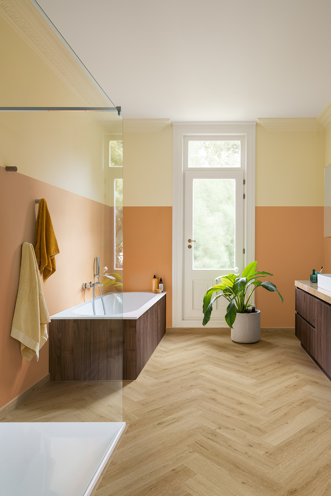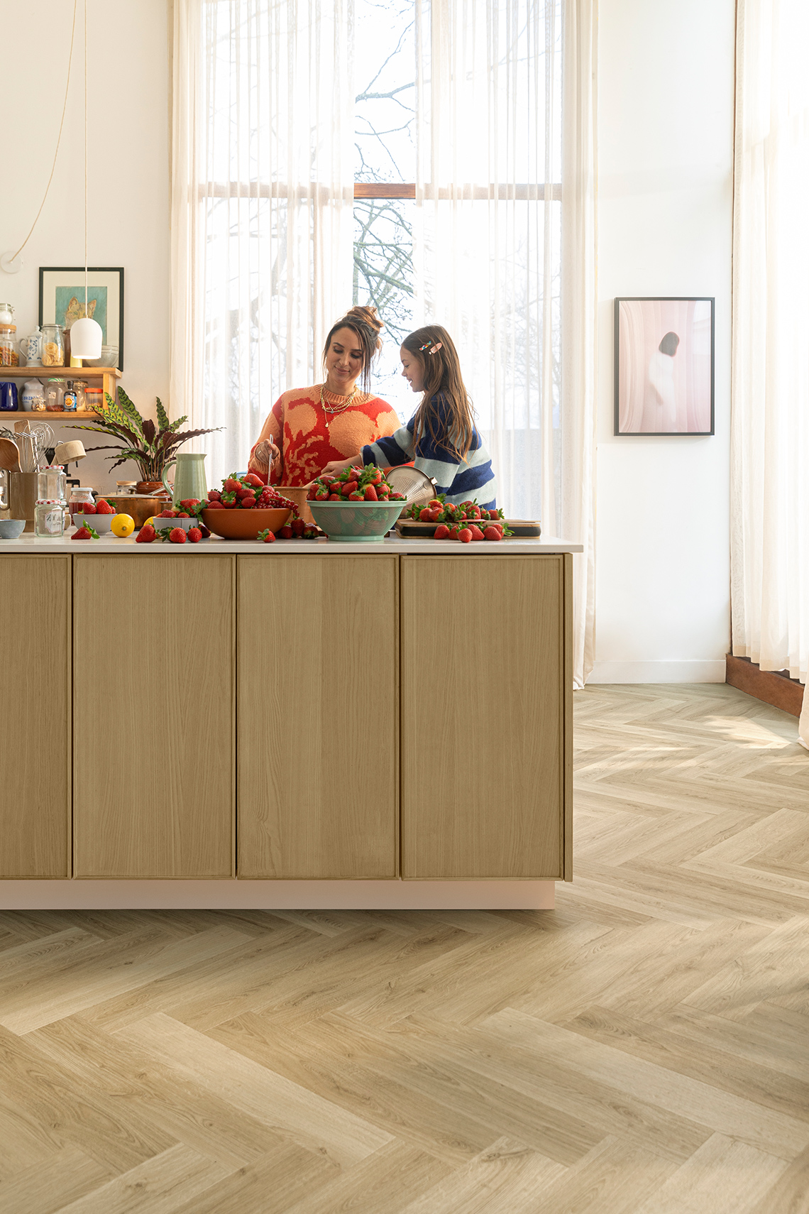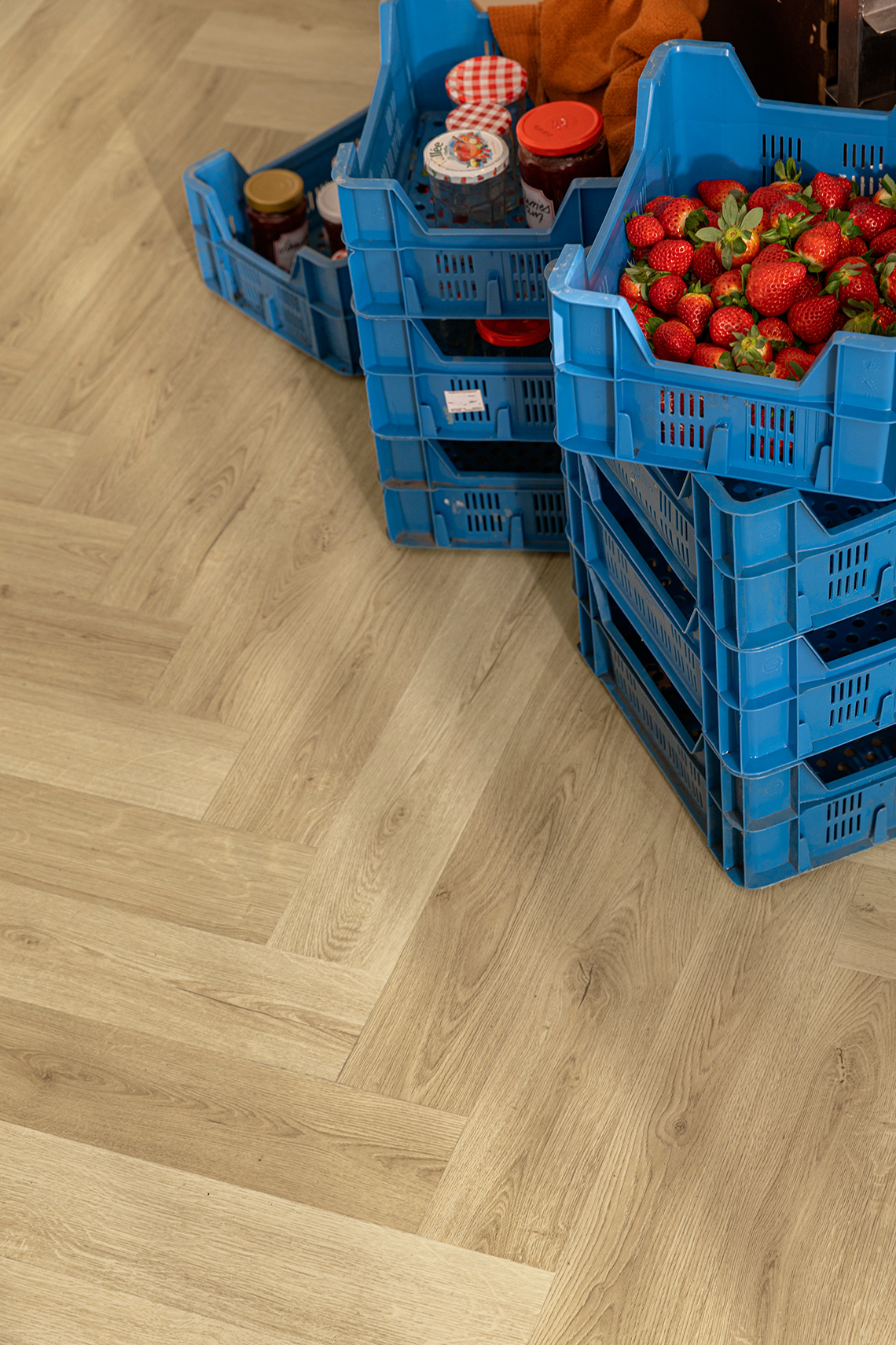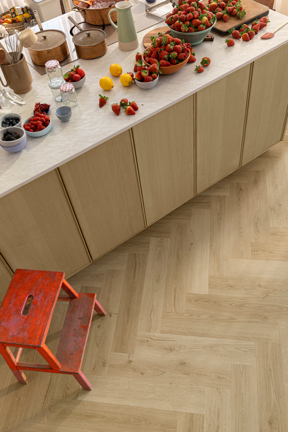 Kolekcja podłóg winylowych Ciro pomaga stworzyć przestrzeń, która harmonijnie łączy klasyczne i nowoczesne elementy. Winylowe podłogi Ciro w jodełkę wprowadzają elegancję dzięki palecie kolorów inspirowanej drewnem muśniętym słońcem. Podłogi Ciro z podkładem są trwałe, ciche, łatwe w montażu i całkowicie wodoodporne, idealne nawet do kuchni i łazienki. Kolekcja oferuje ciepłe, naturalne odcienie drewna — świetny wybór dla tych, którzy pragną odrobiny luksusu i elegancji w swoim domu.