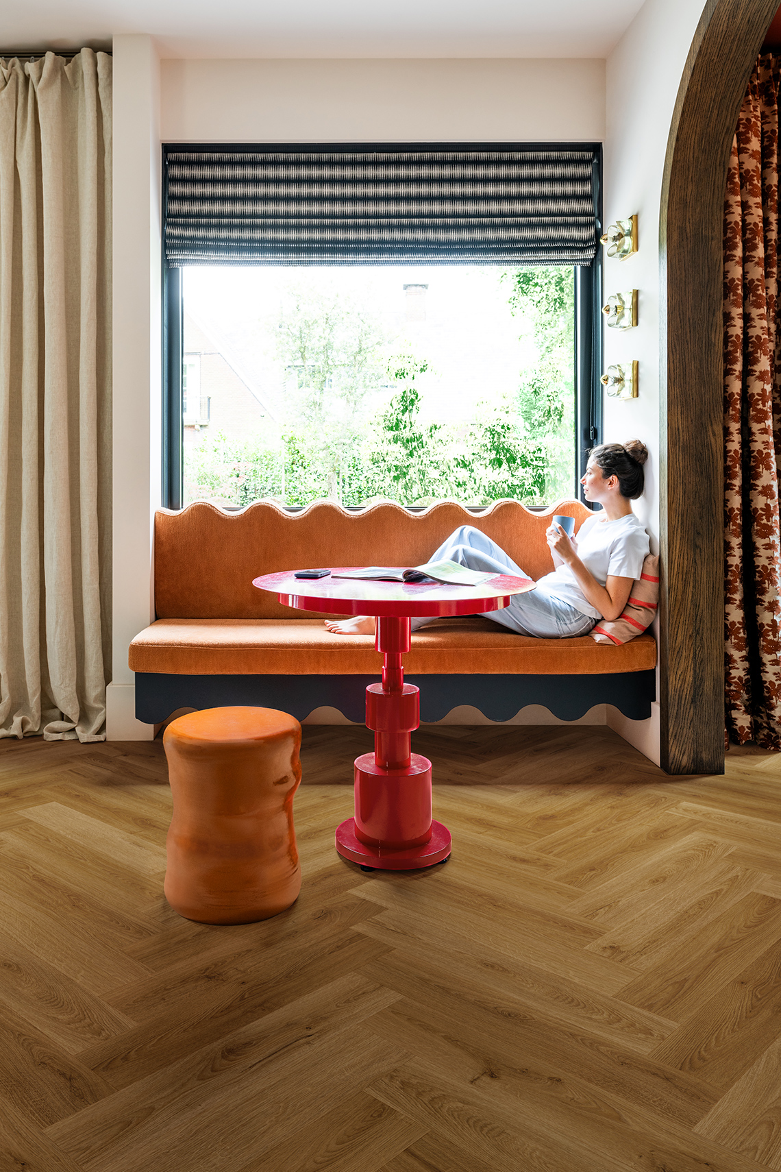 Kolekcja podłóg winylowych Ciro pomaga stworzyć przestrzeń, która harmonijnie łączy klasyczne i nowoczesne elementy. Winylowe podłogi Ciro w jodełkę wprowadzają elegancję dzięki palecie kolorów inspirowanej drewnem muśniętym słońcem. Podłogi Ciro z podkładem są trwałe, ciche, łatwe w montażu i całkowicie wodoodporne, idealne nawet do kuchni i łazienki. Kolekcja oferuje ciepłe, naturalne odcienie drewna — świetny wybór dla tych, którzy pragną odrobiny luksusu i elegancji w swoim domu.