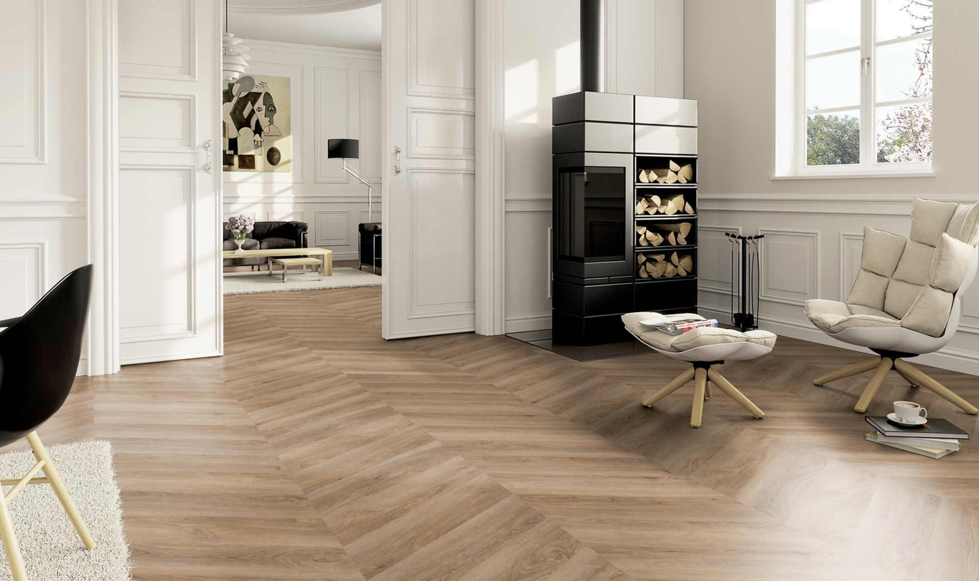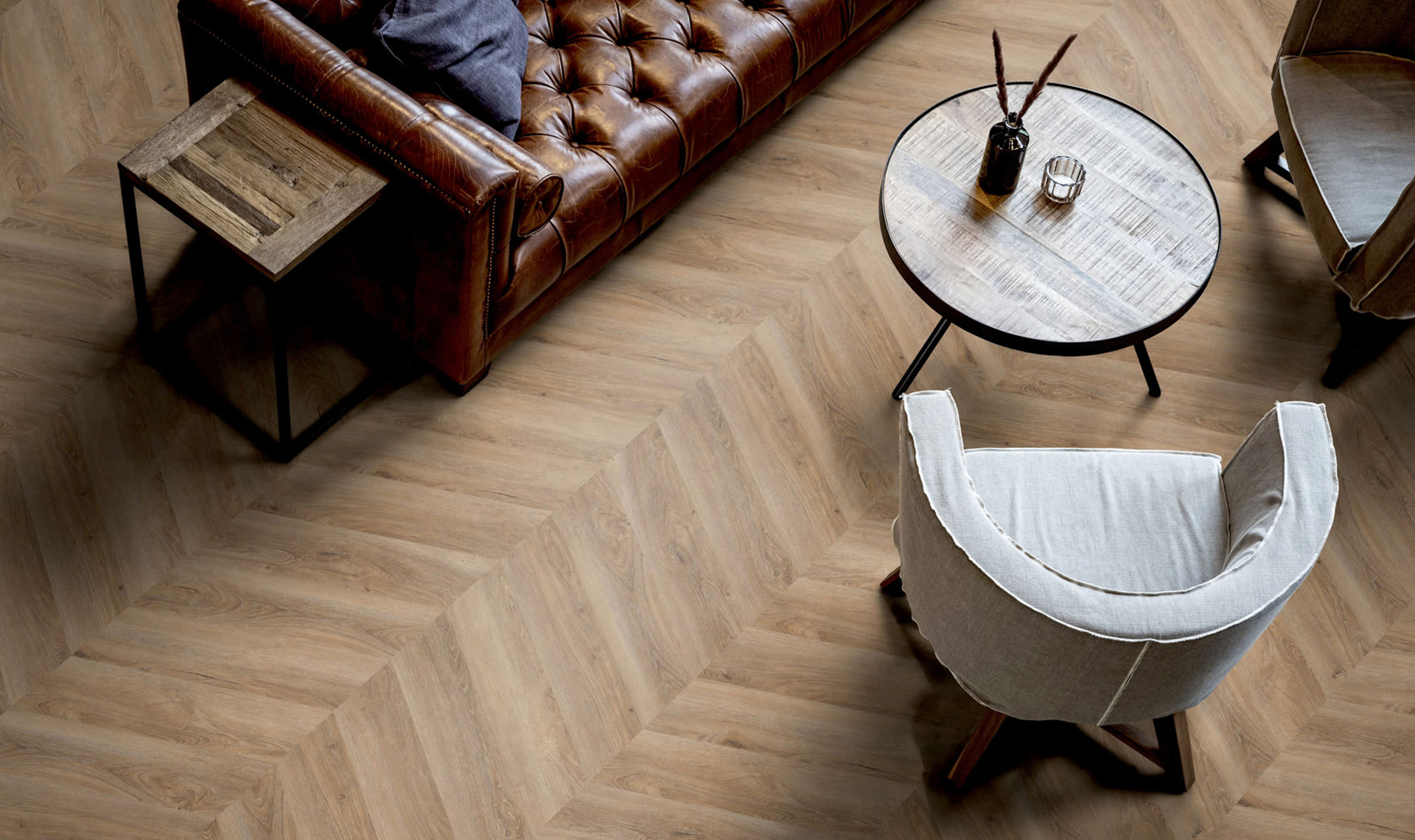Podłoga winylowa Ter Hurne Chevron Edition Perform w kolorze Dąb Malaga łączy elegancki wzór jodełki z wyjątkową wytrzymałością materiału winylowego. Naturalny, ciepły odcień dębu wprowadza przytulną i stylową atmosferę do każdego wnętrza. Powierzchnia jest odporna na zarysowania, wilgoć oraz intensywne użytkowanie, dzięki czemu doskonale sprawdzi się w domach i przestrzeniach komercyjnych. System klik zapewnia szybką i prostą instalację, a łatwa w utrzymaniu powierzchnia ułatwia codzienną pielęgnację. Podłoga zachowuje stabilność wymiarową nawet przy zmianach temperatury i wilgotności. Wzór jodełki dodaje wnętrzu elegancji, harmonijnie łącząc nowoczesny design z klasycznym stylem.