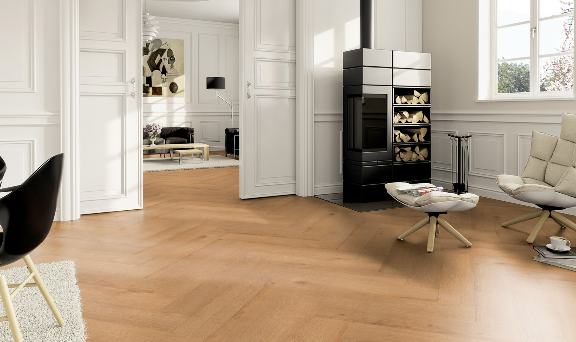 Ter Hürne Herringbone Edition Perform Dąb Hamburg to podłoga premium stworzona dla najbardziej wymagających użytkowników. Wyróżnia się wyjątkowo realistycznym odwzorowaniem naturalnego drewna oraz głęboką, wyrafinowaną kolorystyką dębu Hamburg. Klasyczna jodełka nadaje przestrzeniom elegancję rodem z luksusowych rezydencji, jednocześnie zachowując wszystkie praktyczne zalety nowoczesnego winylu.