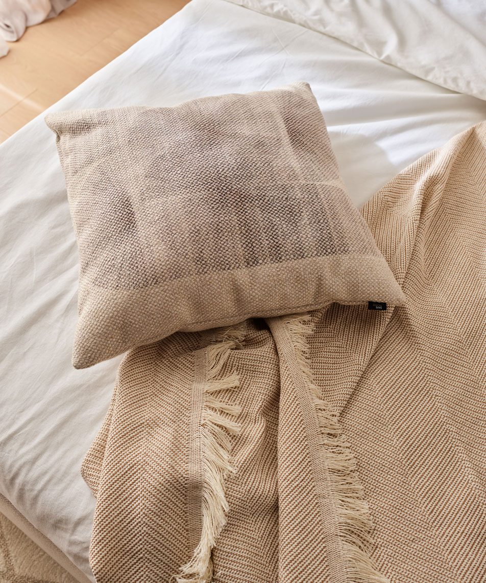 - Jej poszewka, wykonana z wysokogatunkowej mieszanki, wyróżnia się autorskim wzorem i naturalną kolorystyką, która wprowadza do wnętrza harmonię i ciepło.