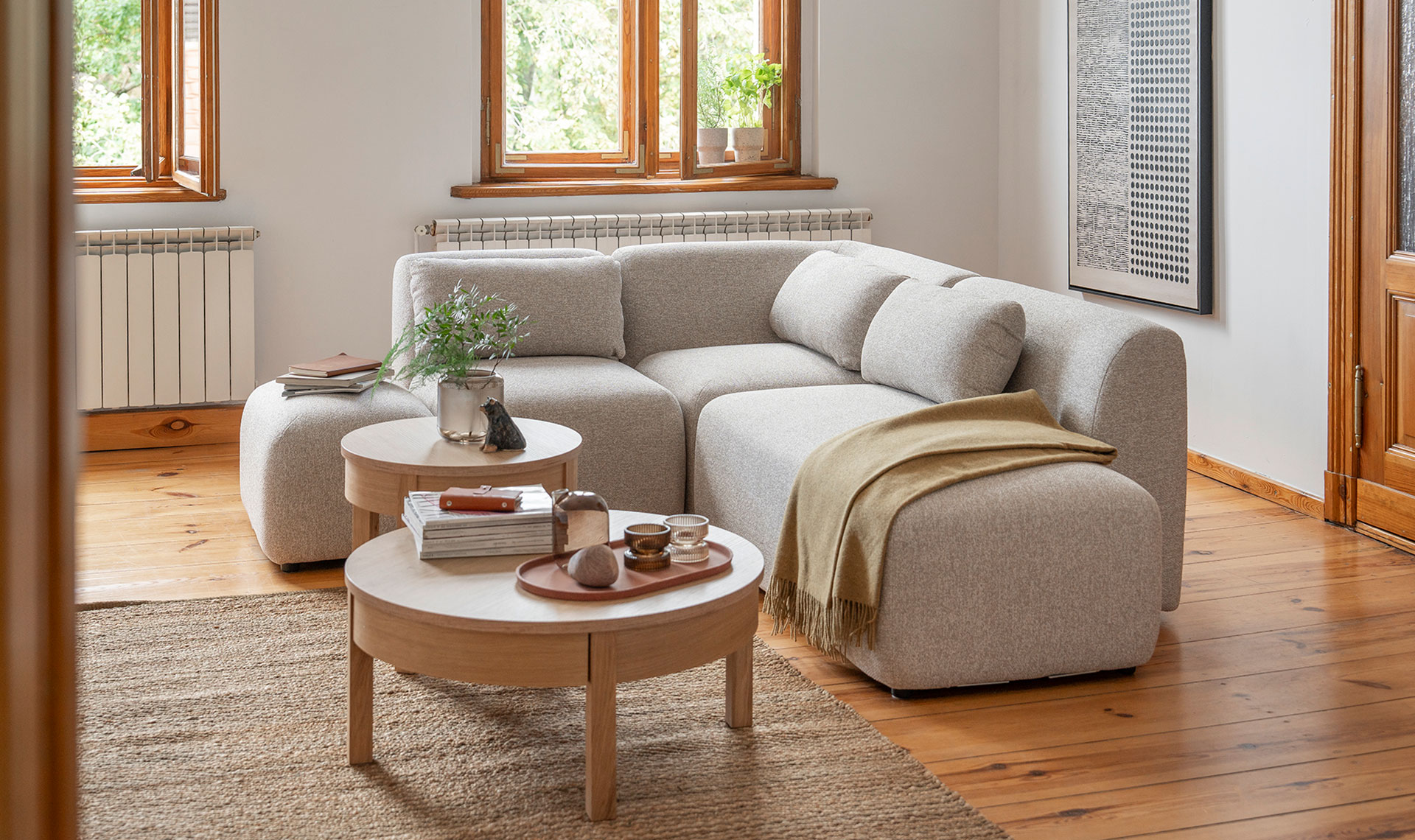 - Doskonale dopasowuje się do każdego modułu z kolekcji Nui - uniwersalne wymiary i kształt gwarantują idealną kompatybilność z sofami, narożnikami i pojedynczymi modułami.