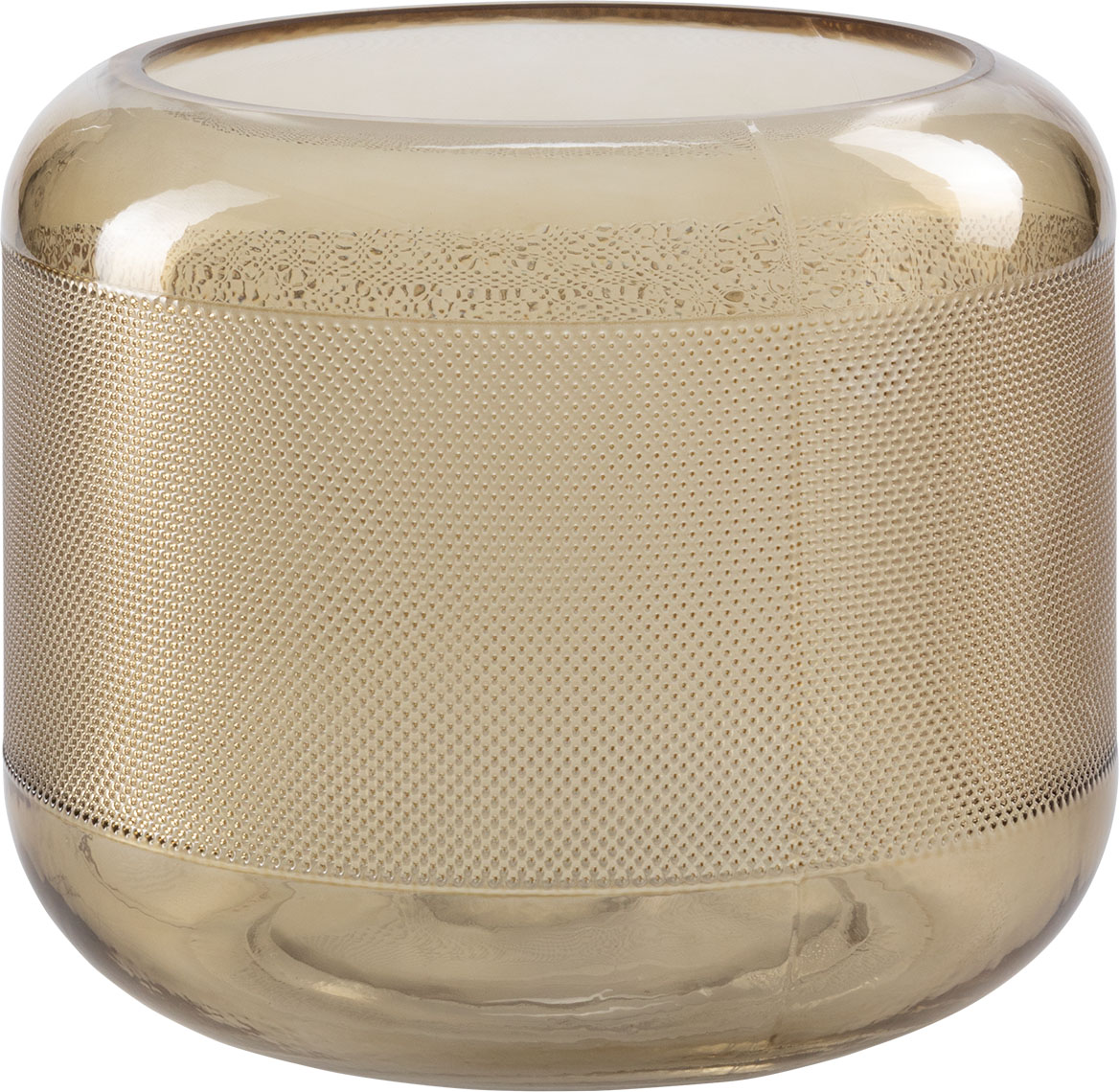Pojemniki posiadają ozdobne fakturowane wykończenie, kontrastujące z gładkością szkła.