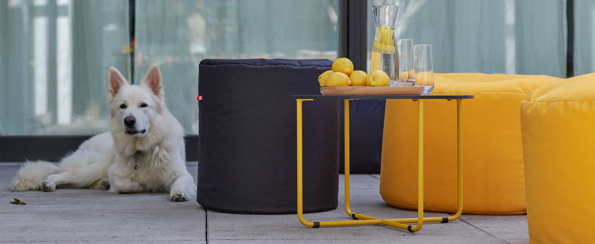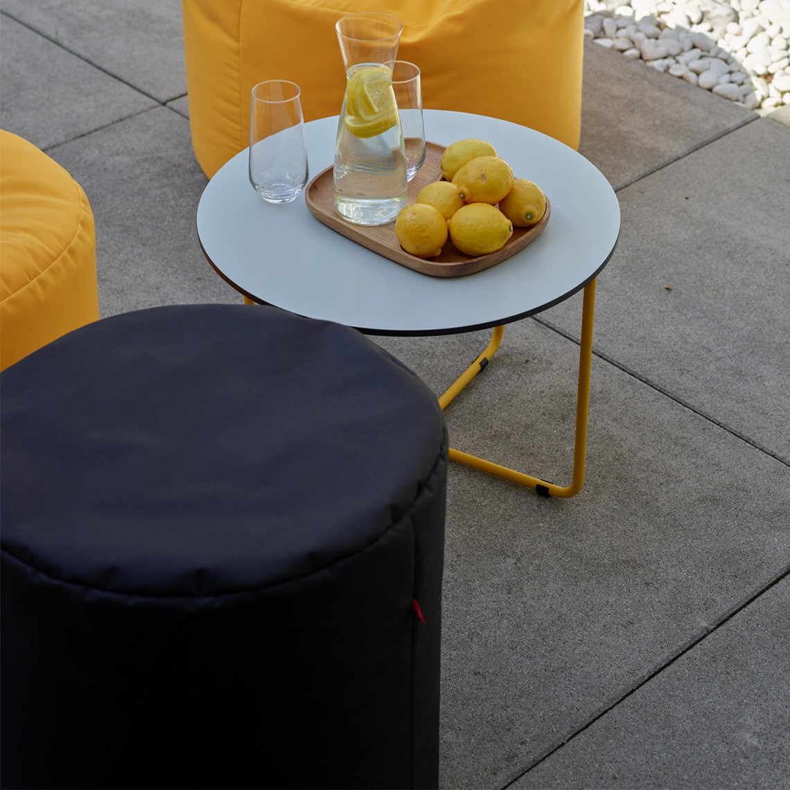 Lekki i łatwy do przenoszenia puf / stolik sprawdzi się dobrze na balkonie, tarasie i w ogrodzie, jak i wewnątrz domu.