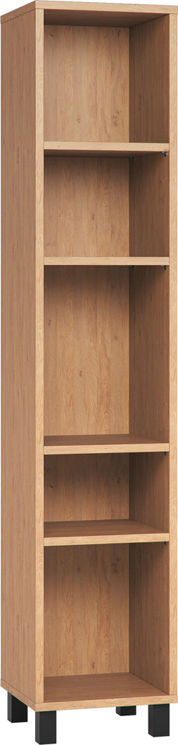 Wąski regał z kolekcji Simple ułatwia utrzymanie porządku w niewielkiej przestrzeni. Na 4 półkach o regulowanej wysokości możesz zorganizować książki i płyty lub wyeksponować dekoracje. Decydując o kolorze i nóżkach mebla, z łatwością dopasujesz go do wystroju.