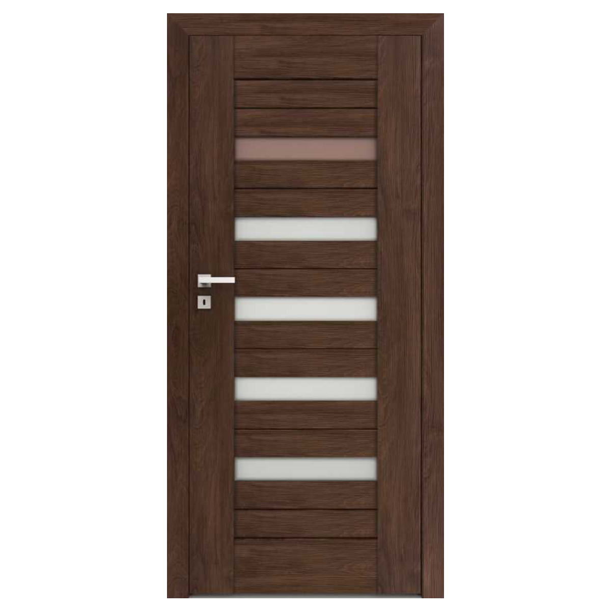klucz, blokada łazienkowa, wkładka patentowa, lub zamek oszczędnościowy. Opcjonalnie można wybrać szyby przeźroczysta, Decormat brąz bądź Decormat grafit. Skrzydło przygotowane jest do