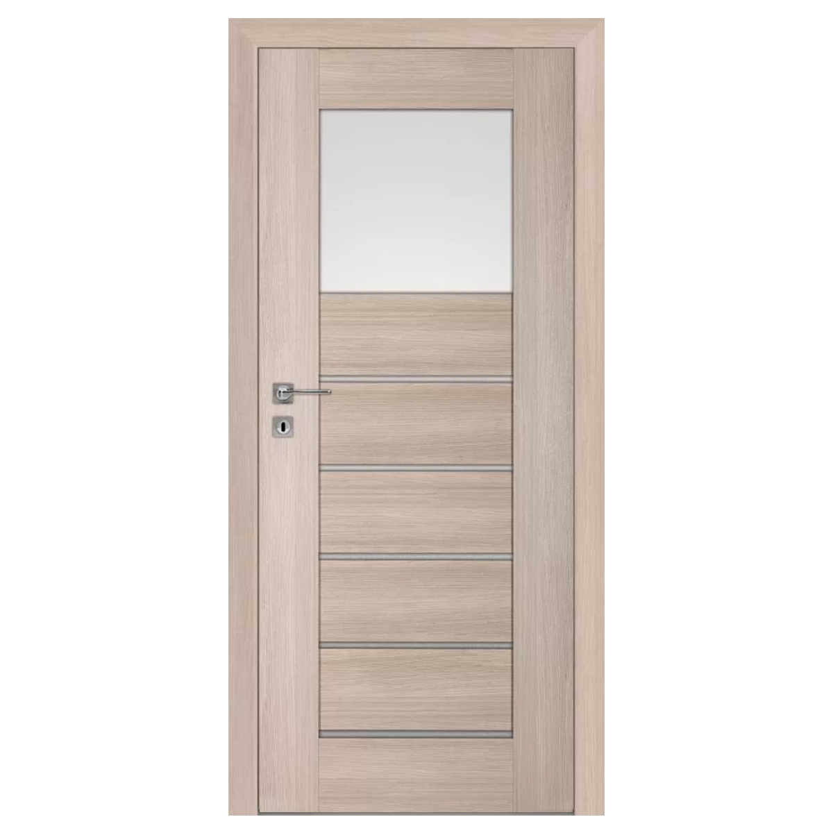 Ramiaki wykonane z płyty MDF. Warstwa zewnętrzna uszlachetniona jest okleiną dekoracyjną Dre-Cell decor bądż Dekor 3D. Zastosowane w nim komponenty sprawiają, że powierzchnia DRE-Cell Decor jest elastyczna, co zapobiega m. in. pękaniu nawet przy uderzeniu ciężkimi przedmiotami i przy zwykłym użytkowaniu, oraz odporna jest na zarysowania. Wyposażenie standardowe to: trzy zawiasy srebrne, zamek na klucz, blokada łazienkowa, wkładka patentowa, lub zamek oszczędnościowy, szyba Decormat o grubości 4 mm. Opcjonalnie można wybrać szyby przeźroczystą, Decormat brąz bądź Decormat grafit. Skrzydło przygotowane jest do ewentualnego przycięcia (max. 60 mm we własnym zakresie) a także wykonania go w systemie przesuwnym. Niektóre modele z tej serii posiadają wstawki w kolorze skrzydeł bądź oklejonych srebrnym laminatem.
