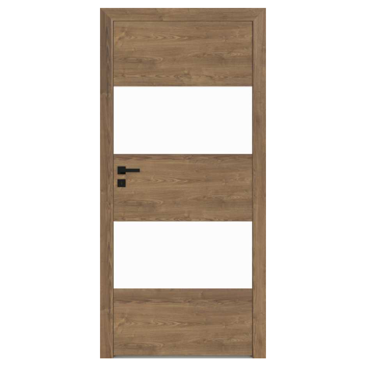 Skrzydło Rivia wykonane jest w dekorze biały mat z możliwością wyboru dekoru pasa środkowego. Krawędzie skrzydła w kolorze pasa środkowego. Rama skrzydła wykonana jest drewna iglastego. Wypełnienie stanowi płyta wiórowa otworowa. Skrzydło wyposażone jest opcjonalnie: w zamek na klucz, wkładkę bądź blokadę WC, dwa lub trzy zawiasy w kolorze srebrnym. W systemie bezprzylgowym skrzydło posiada zamek magnetyczny. Wersje szklone posiadają opcjonalnie szybę: Kora biała, Chinchila, Żaluzja bez dopłat lub za dopłatą szybę dekoracyjną Decormat, Dekormat brąz lub grafit.