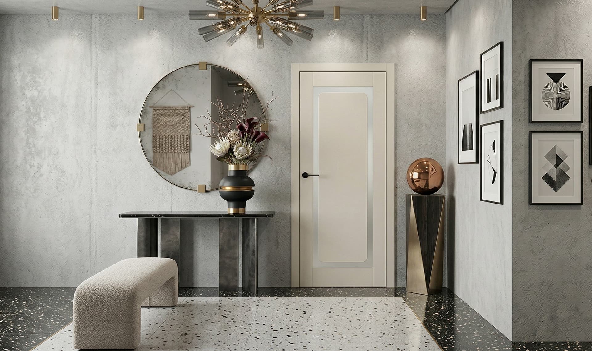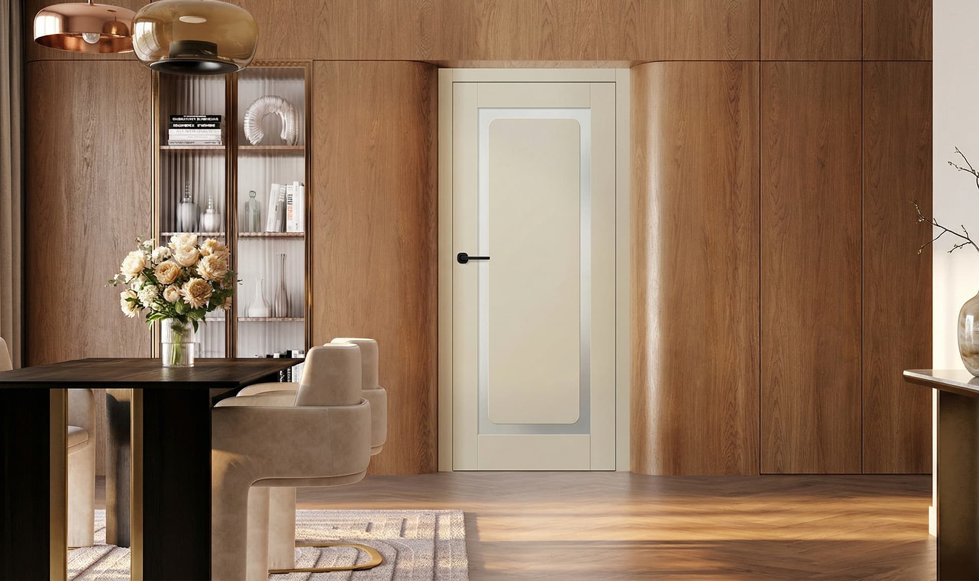 Model Jasmin 1 to propozycja dla osób, które szukają nowoczesnych drzwi o lekkiej formie, ale z wyrazistym, designerskim akcentem. To harmonijne połączenie dużej tafli szkła z precyzyjnie wykonanymi panelami, które nadają wnętrzu unikalny charakter.
