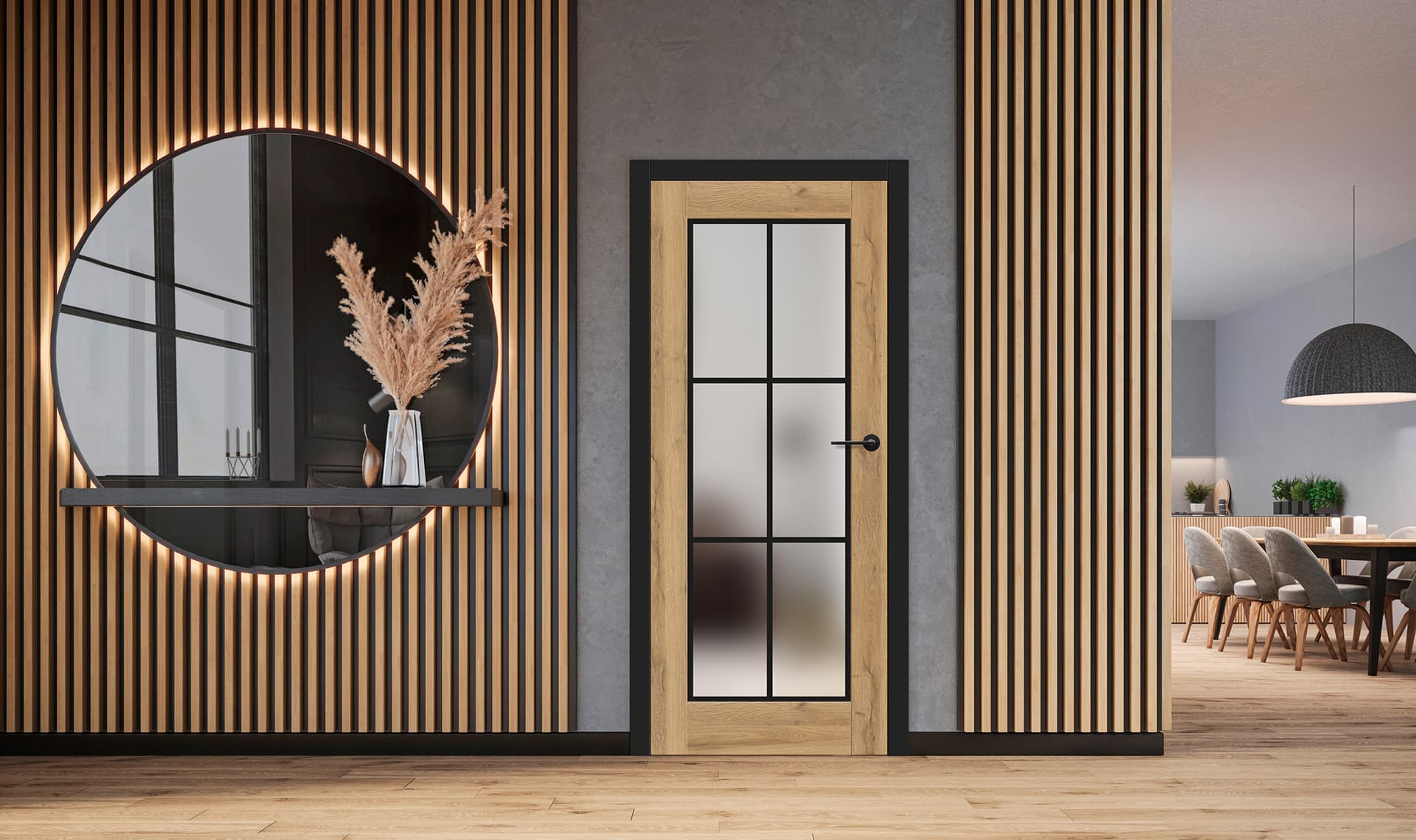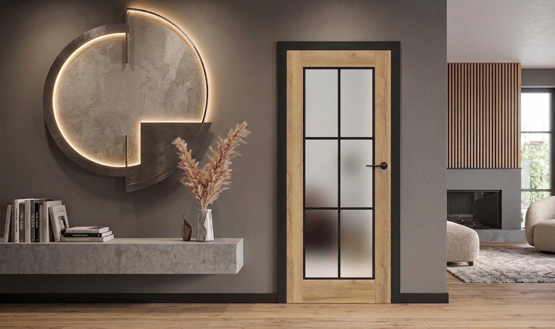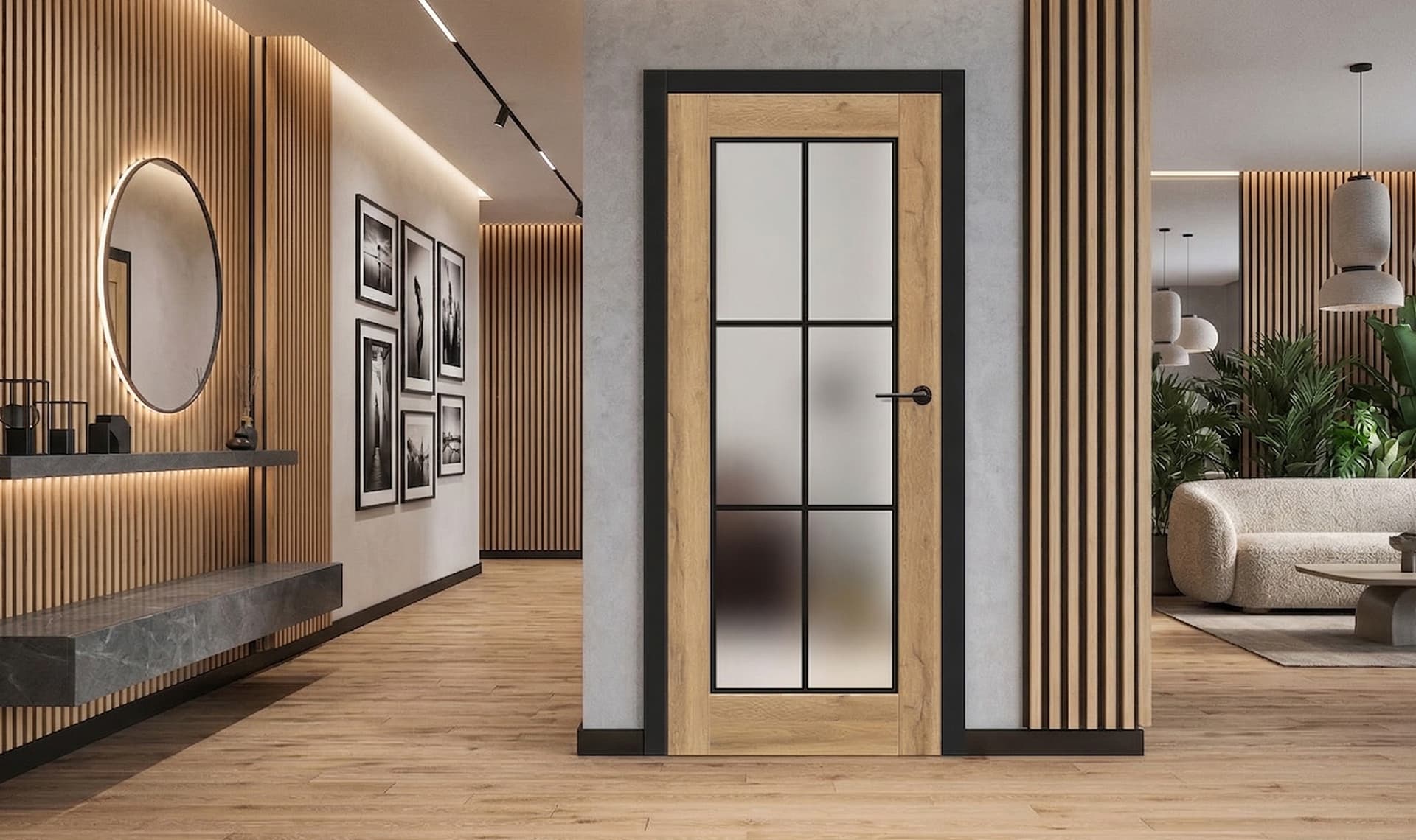 - Maksimum Światła: Duża powierzchnia szkła (przezroczystego lub mlecznego) sprawia, że nawet najciemniejszy korytarz wypełnia się naturalnym światłem, a wnętrze wydaje się optycznie większe.