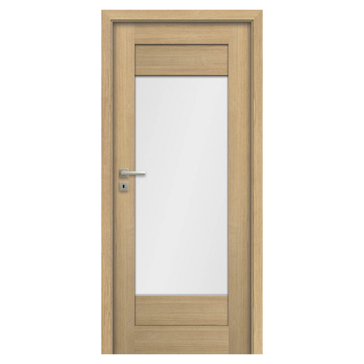 Skrzydło Arco występuje w opcji przylgowej i bezprzylgowej. Ramiak, panele oraz płyciny (usłojenie poziome) wykonane są z płyty MDF i pokryte powierzchnią ECO TOP i Silkstone. Wzór W05 i W06 posiada płyciny w usłojeniu pionowym, wersje W02, W03, W07 W08 płyciny poziome. Szklenie w skrzydłach matowe w kolorze białym oraz brąz. Skrzydło przylgowe wyposażone jest: w zamek jednopunktowy wpuszczany o rozstawie 72mm na klucz, wkładkę bądź zamek WC, zawiasy czopowe wkręcane 3szt a w wersji bezprzylgowej zamek magnetyczny i ukryte zawiasy. Opcjonalne podcięcie wentylacyjne występuje tylko w szerokościach 80 i 90.
