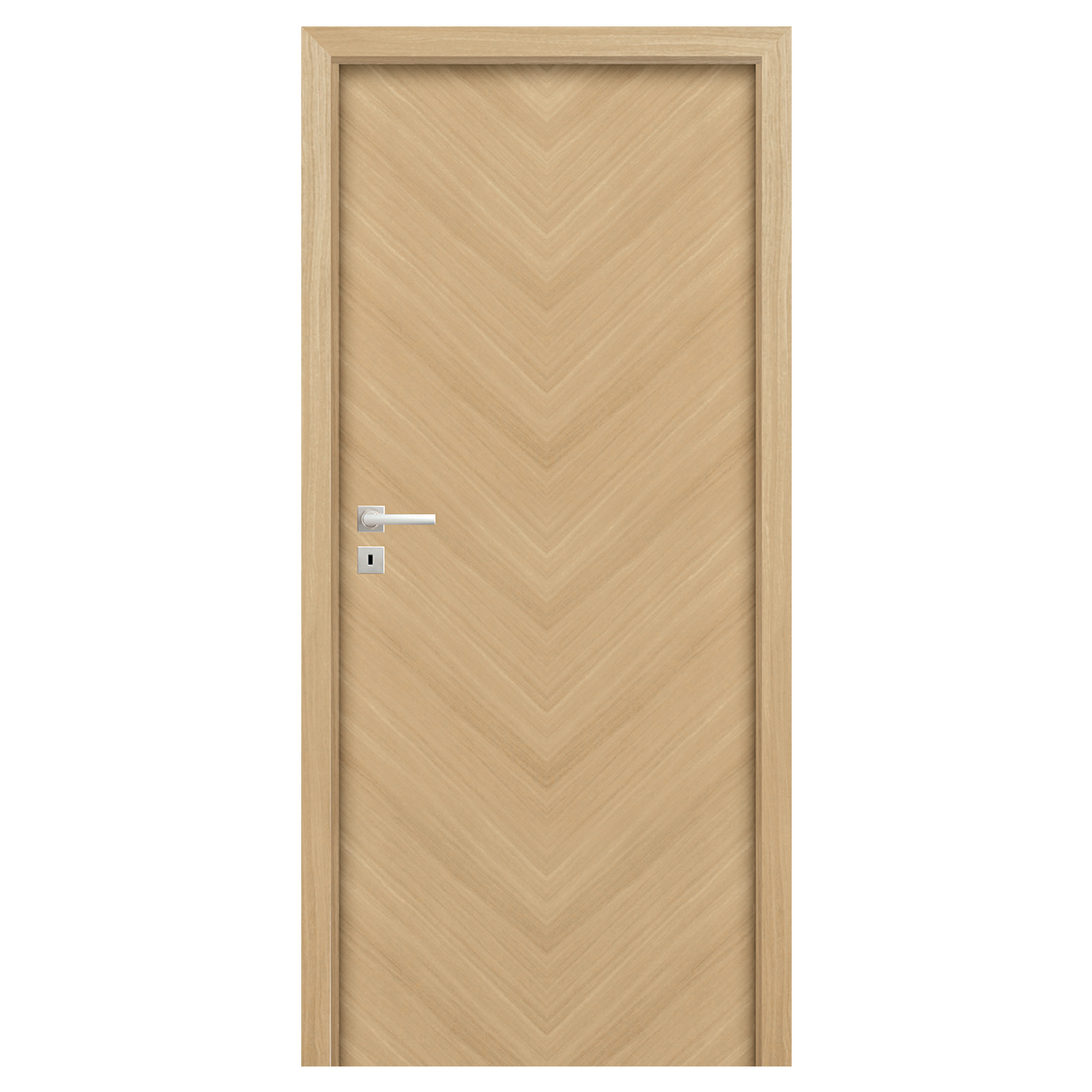 - Drzwi zbudowane są z ramiaka drewnianego obłożonego dwiema gładkimi płytami HDF pokrytymi naturalnymi okleinami;