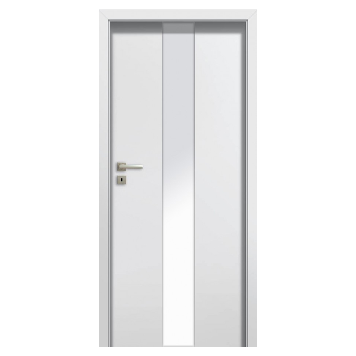 pełna. Ozdobne frezowania we wzorach B1, B2, B3. Wzory A01, A02, A03 posiadają hartowaną szybę biały mat o grubości 6 mm. Wyposażone jest w jednopunktowy zamek wpuszczany, na klucz,