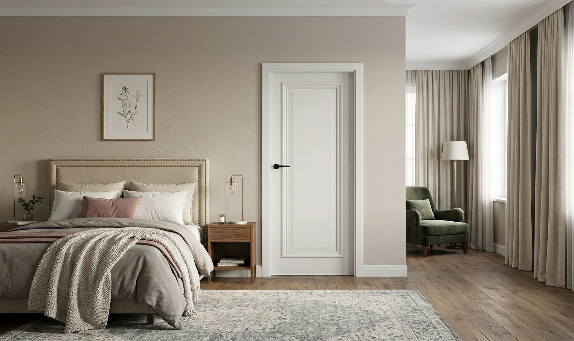 Vilano V01 to drzwi, które nigdy nie wyjdą z mody. Subtelne, profilowane ramki nadają im wyjątkowej elegancji, a solidna drewniana konstrukcja sprawia, że są to drzwi "na pokolenia". Idealny wybór do wnętrz w stylu klasycznym, angielskim oraz Modern Classic.