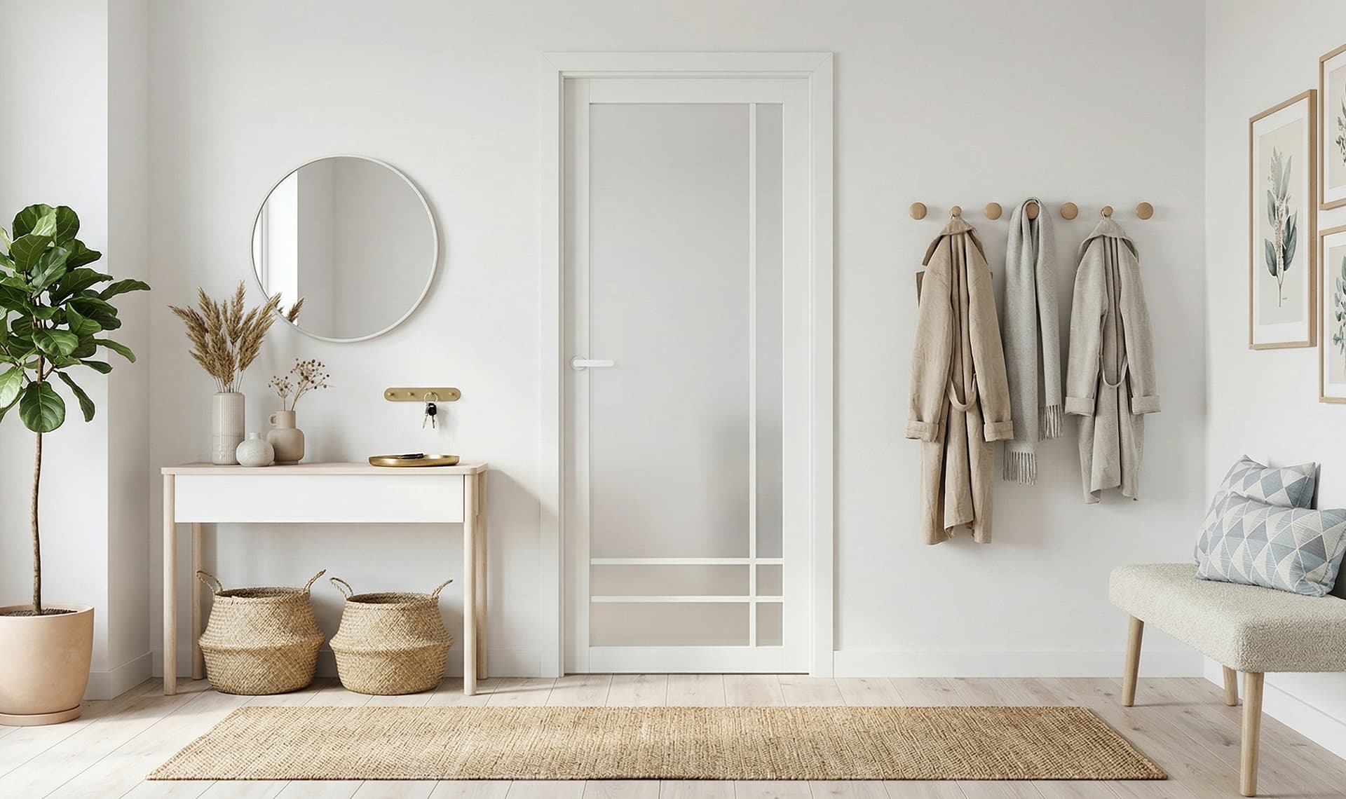 - Nowoczesne Okucia w Kolorze: W standardzie otrzymujesz ukryte zawiasy oraz cichy zamek magnetyczny, które są kolorystycznie dopasowane do skrzydła (czarne, białe lub satynowe).
