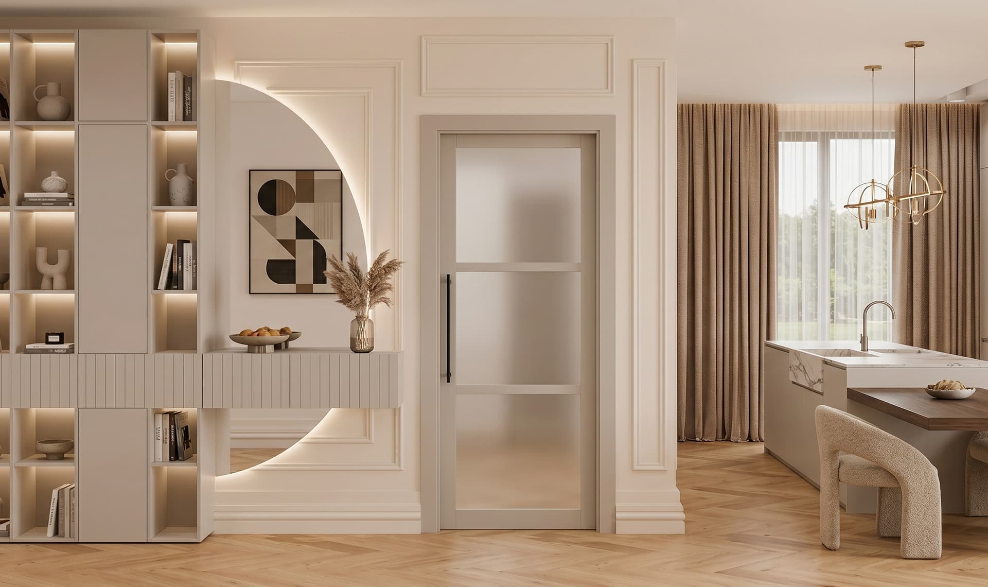 Nowoczesna alternatywa dla tradycyjnych skrzydeł. Idealne drzwi wszędzie tam, gdzie chcesz oddzielić strefy (np. salon od korytarza), nie tracąc ani grama naturalnego światła.