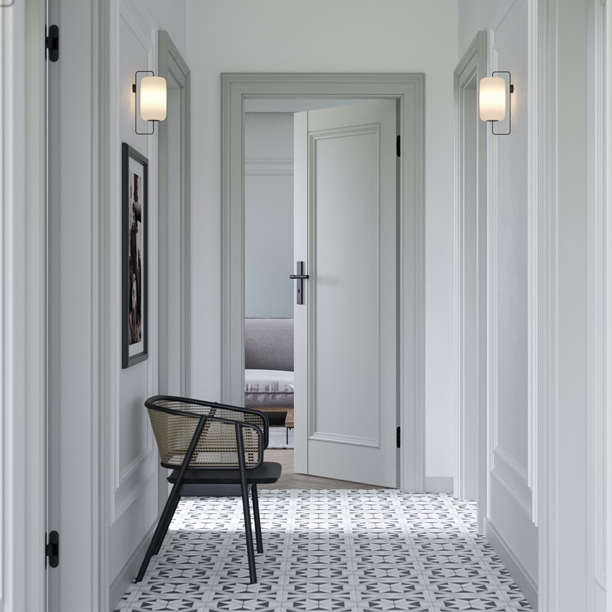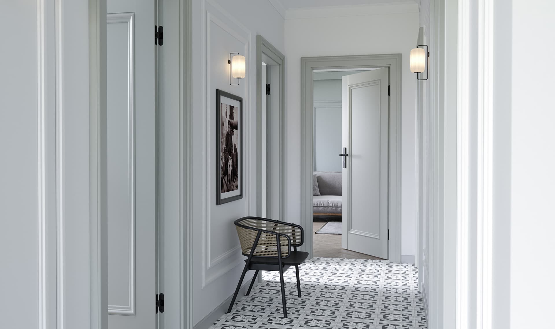 Model Ornato O.1 to hołd dla tradycyjnego rzemiosła, zamknięty we współczesnej formie. Dzięki precyzyjnym podziałom i ozdobnym ramkom, drzwi te wprowadzają do wnętrza spokój, ład i artystyczny sznyt, charakterystyczny dla stylu Modern Classic.