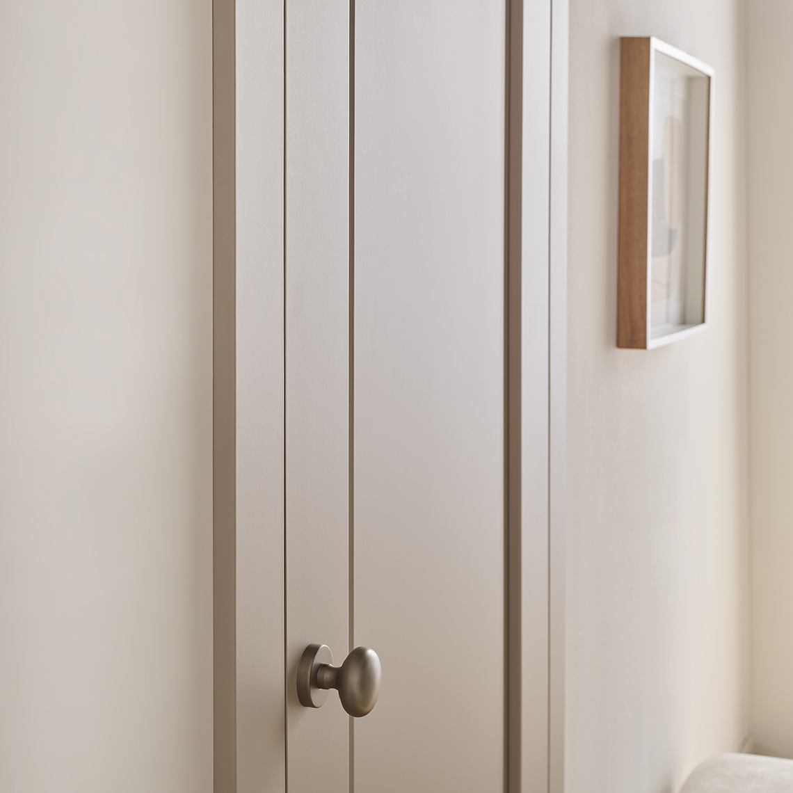 - Wypełnienie drzwi stanowią panele z płyty HDF o grubości 16mm, fazowane i pokryte okleiną dekoracyjną.