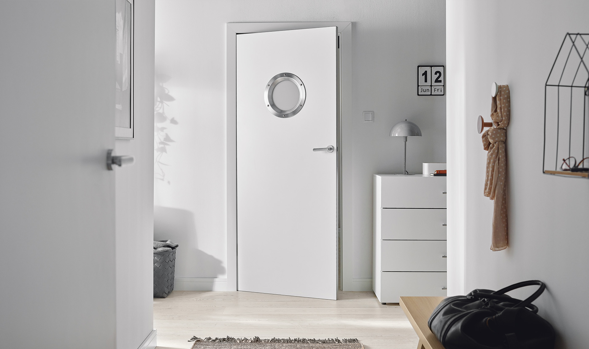 - Bezprzylgowa z krawędzią bez przylgi oraz 2 zawiasami chowanymi Estetic 80 (zawiasy stanowią wyposażenie dedykowanej ościeżnicy).