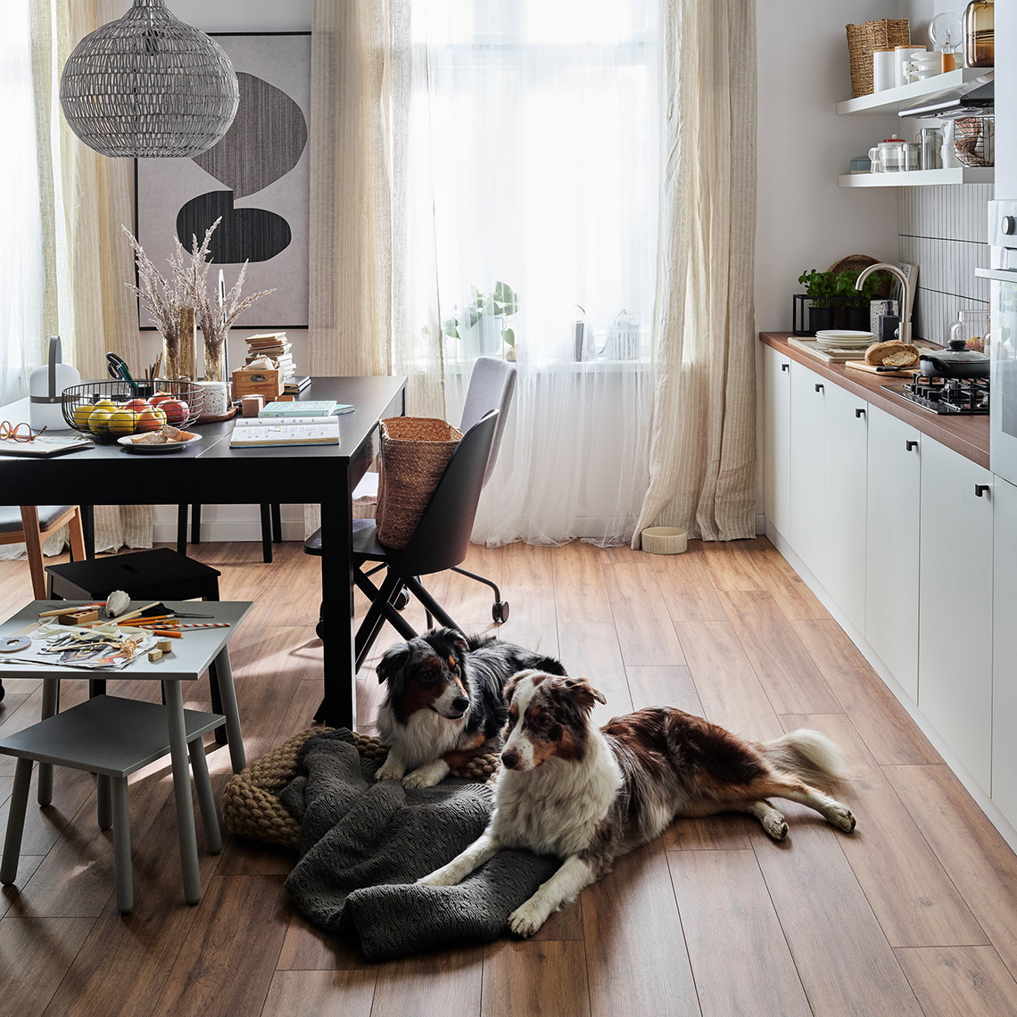 - płyta laminowana – odporna na uszkodzenia i wilgoć, łatwa do utrzymania w czystości.