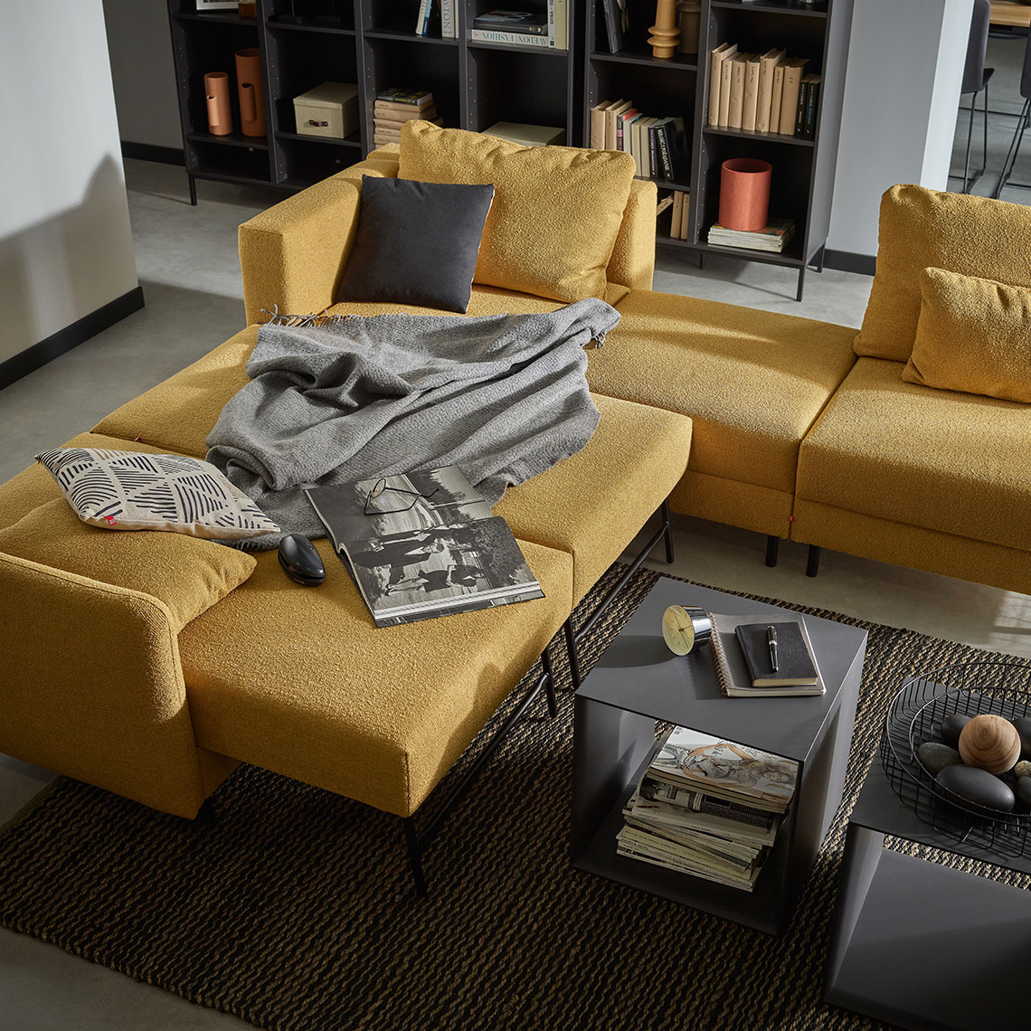 - Rzeźbiarska forma mebli oraz uniwersalna kolorystyka powodują, że mogą one funkcjonować jako zestaw ale także jako pojedynczy element otoczony meblami z innych kolekcji.