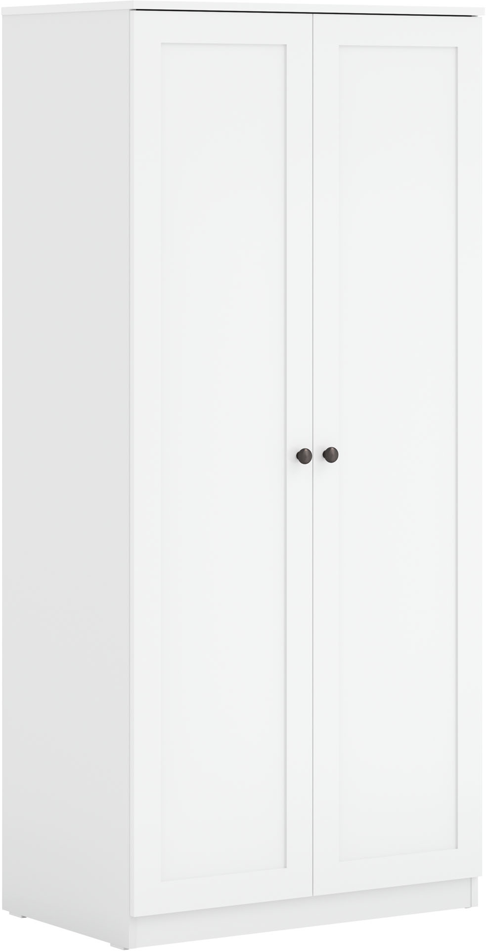 Szafa Amelie oferuje mnóstwo miejsca do przechowywania ubrań malucha dzięki dwóm drążkom na wieszaki i górnej półce. Klasyczny, biały mebel z ciekawym detalem w postaci metalowych uchwytów i frezowanym frontem, będzie ponadczasowym dodatkiem do pokoju dziecięcego.