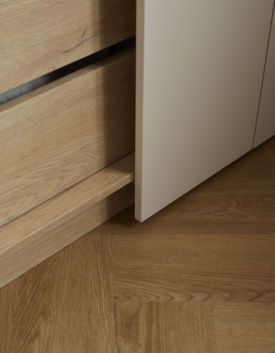 - Ściany tylne mebla i dna szuflad (w wybranych pakietach wnętrz) zostały wykonane z płyty HDF.